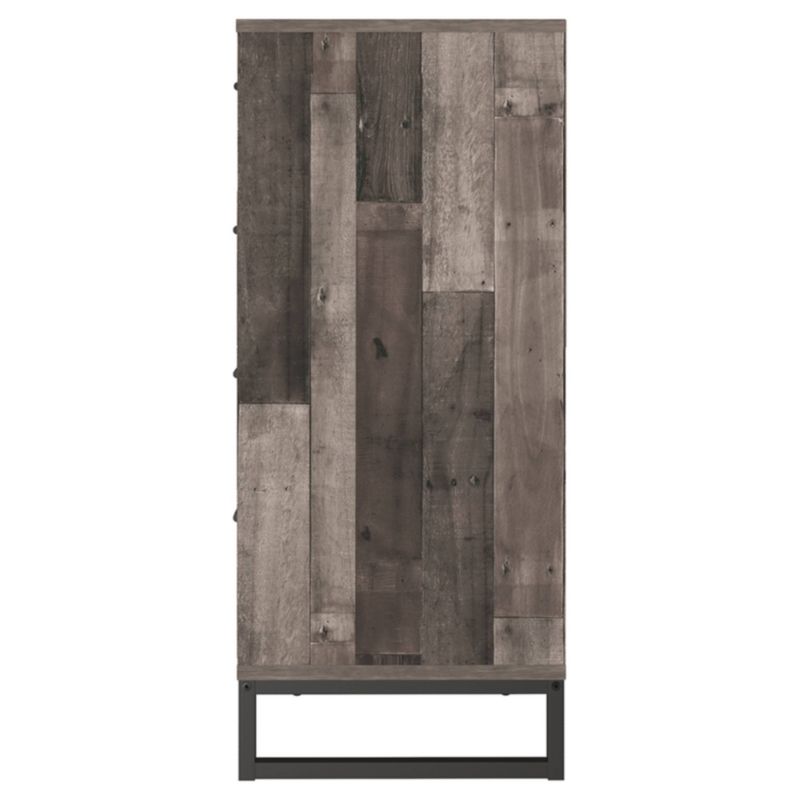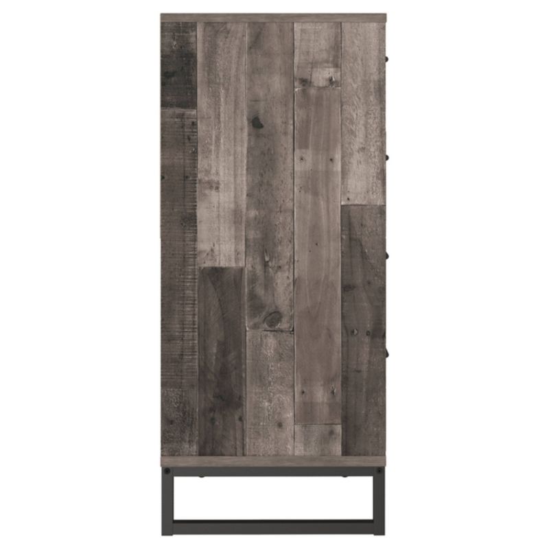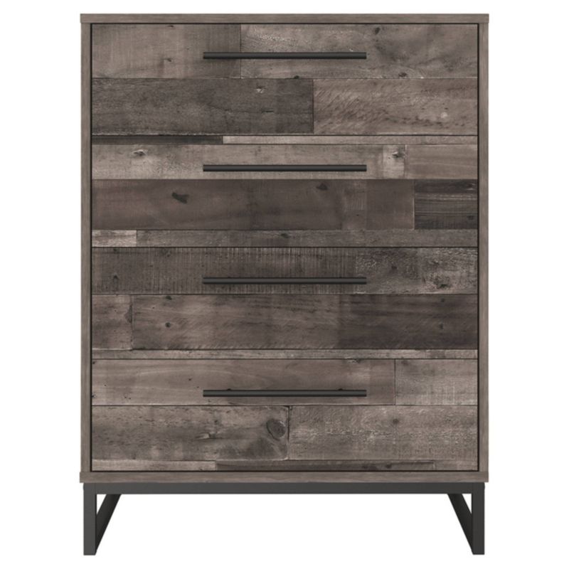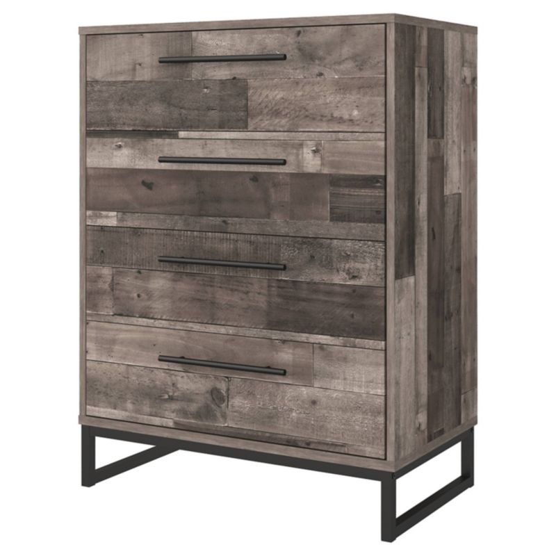 Streamlined design and a stunning two-tone finish come together in one simply extraordinary piece. This chest of drawers is sure to impress with four smooth-operating drawers, canted metal legs and rich brown finish over replicated pine grain texture. Its mid-century style is a nod to the past, while the updated finish keeps it solidly in the present. Signature Design by Ashley is a registered trademark of Ashley Furniture Industries, Inc.