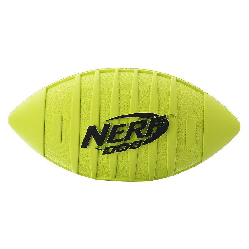 Get ready for a playtime blitz with the Nerf Dog Classic Squeak Football Dog Toy. This play-ready ball comes with a built-in squeaker for the loud fun dogs love. Made with durable rubber, it can stand up to some pretty tough chasing, bouncing and tossing—which means it’s great for playing fetch. It’s designed with a unique spiral ridged pattern that makes it easy to grip, even when it gets slobbery! Plus, it’s made of water-resistant, food-grade, 100% non-toxic rubber for longer-lasting play.
