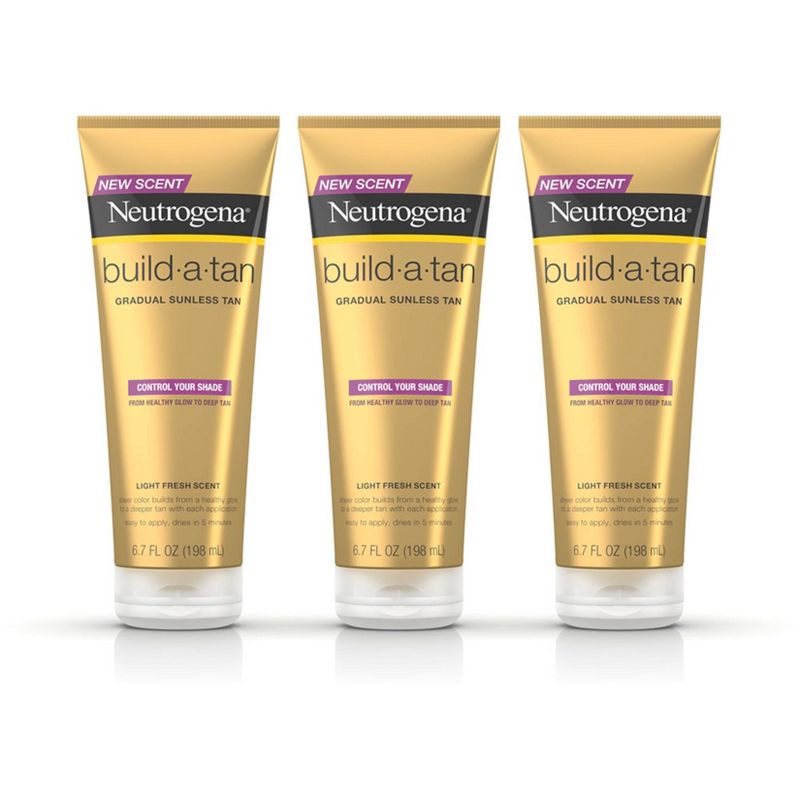 Build a deep, dark tan or a healthy glow with Neutrogena Build-A-Tan Gradual Sunless Body Lotion. This lightweight, sunless tanning lotion allows you to control your tan for a shade that's uniquely your own by delivering sheer color with each application. Apply fast-drying self-tanning lotion more often for a deeper tan or less often for a hint of color. Neutrogena Build-A-Tan gradual sunless tanner dries in five minutes and develops in approximately two to four hours. The sheer, lightly scented formula is clinically tested to provide natural-looking color.
