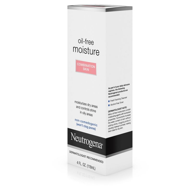 Help moisturize your skin effectively with Neutrogena Oil-Free Daily Facial Moisturizer & Neck Cream for Combination Skin. The lightweight dual-action face lotion formula moisturizes dry skin without adding shine, leaving skin feeling softer and smoother. With an oil-absorbing system, this facial moisturizer is clinically proven to control shine in the T-zone, or wherever skin is oily for a natural, matte finish all day. From a dermatologist-recommended brand, this daily facial moisturizer formula is Lotion helps hydrate dry skin & control shine lighteight, oil-free and non-comedogenic so it won't clog pores. Plus, it makes the perfect addition to your daily beauty and skincare routine for an at-home self-care experience.
