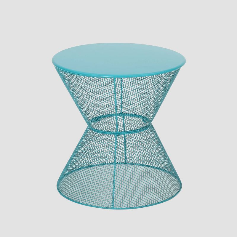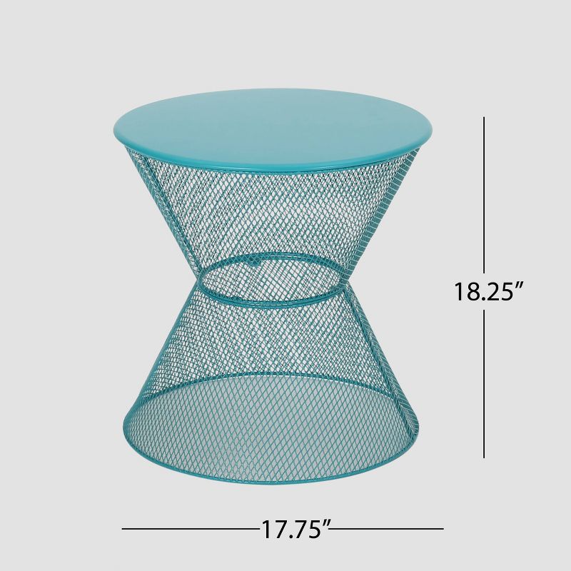 Easily place a chilled drink on our bold side table while you relax with a good book under the summer sun. Featuring a breezy mesh look and rounded silhouette, our side table serves as the perfect companion for your existing furniture, providing a timeless style to your home. Consisting of a striking hourglass shape and iron frame, this delightful table is made to last with its intricate, durable structure and refreshing finish. Ideal for any outdoor space, this table will charm you and your guests alike.