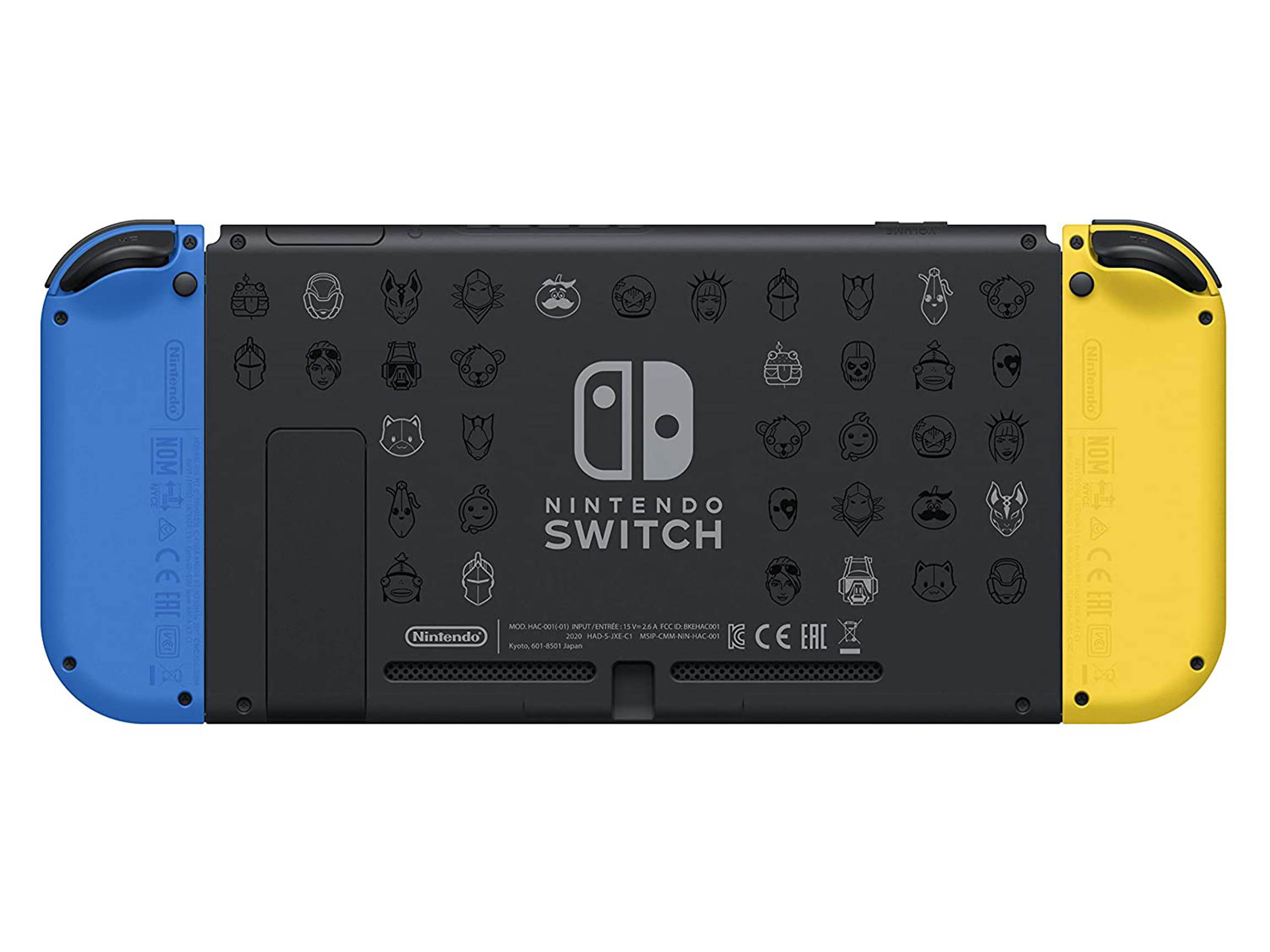 | Package Contents | This bundle includes a uniquely designed Nintendo Switch system with special art on the system and Nintendo Switch dock, a yellow Joy-Con (L) and blue Joy-Con (R), the Fortnite game pre-installed, 2,000 V-Bucks, and a download code for The Wildcat Bundle. The Wildcat Bundle is an in-game pack that includes cosmetic items like the Sleek Strike Back Bling and the Wildcat Outfit. |