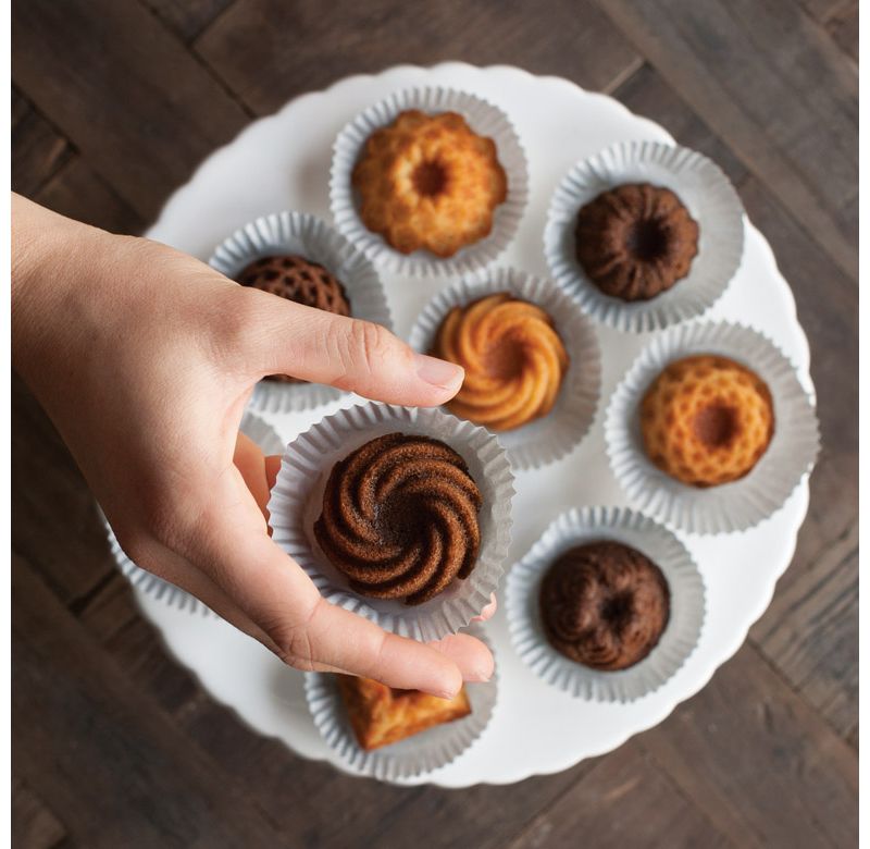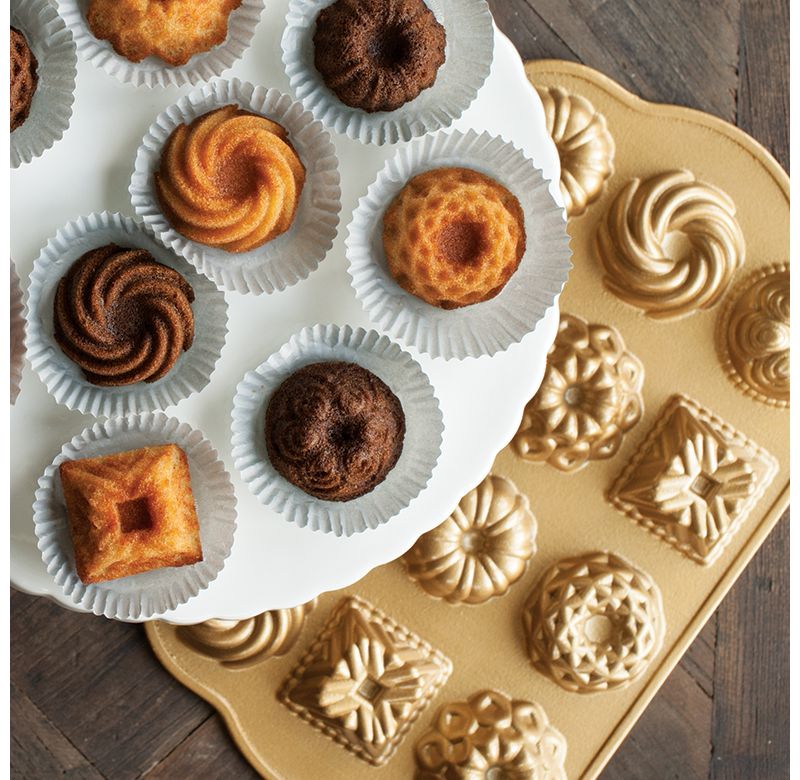 Tiny yes, but not short on details. New plaque includes six Bundt shapes: Square, Jubilee, Chiffon, Crown, Heritage and Original. For cakes, brownies, candy, gelatins, and more. Total pan capacity 1 cup.