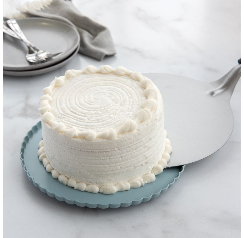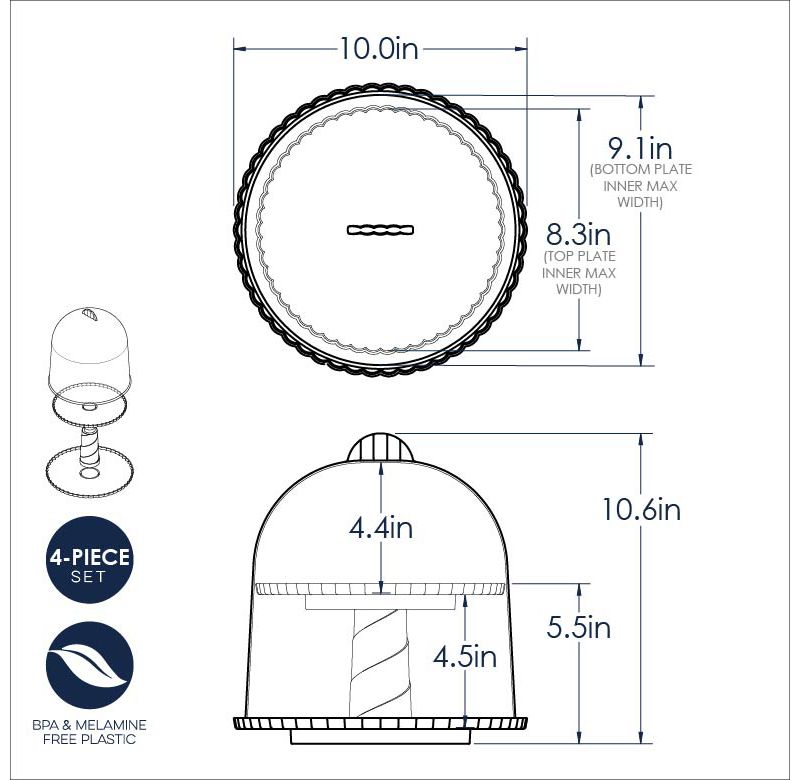 This dessert stand allows you to transport and serve treats with ease. Holds 12 cupcakes or dozens of cookies in a dome-covered 2-tier pedestal to display. Top tier detaches for cleaning or separate display piece. Store and transport desserts with no hassle! Made in the USA.