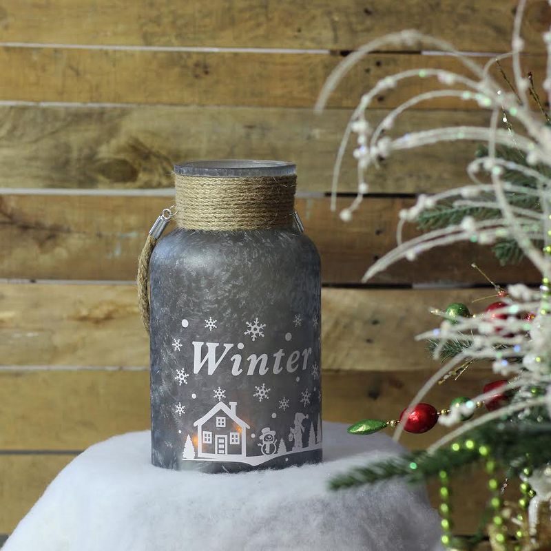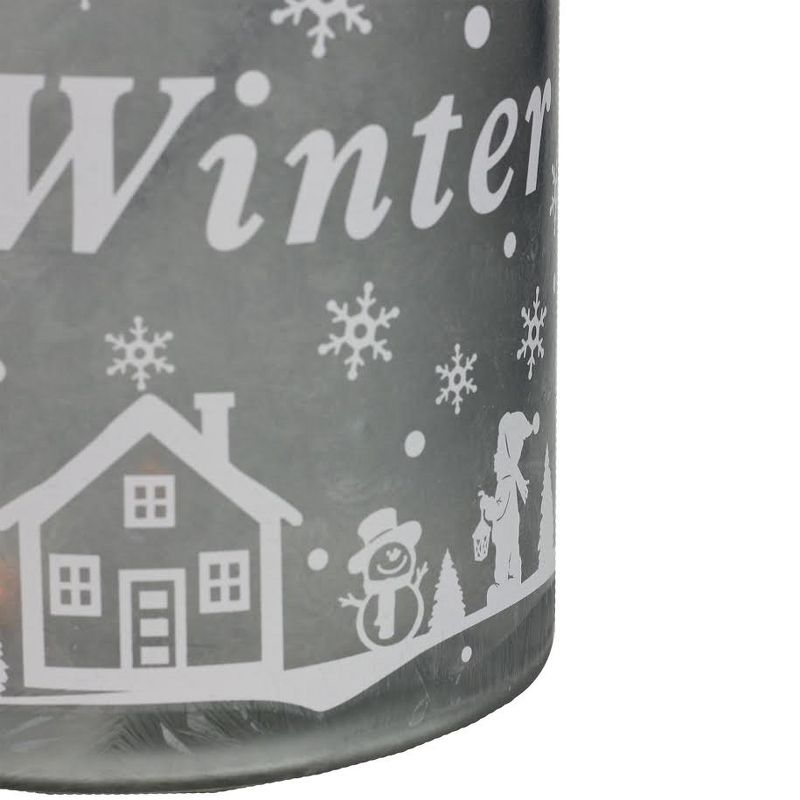 • Gray And White Iced Winter Scene Pillar Candle Holder Lantern