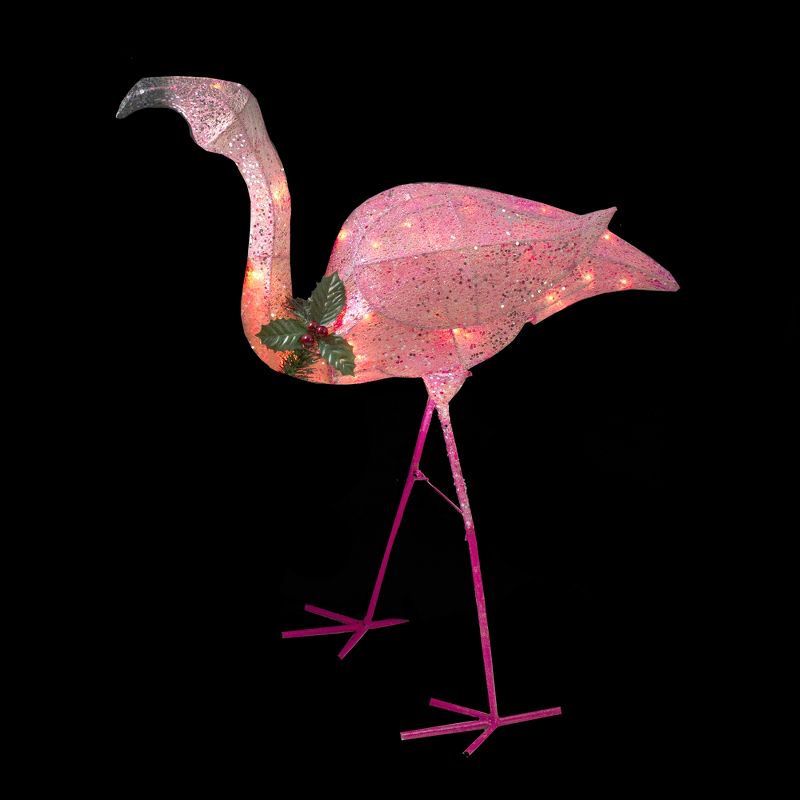 • Pre Lit Glittery Pink Flamingo Yard Decoration
