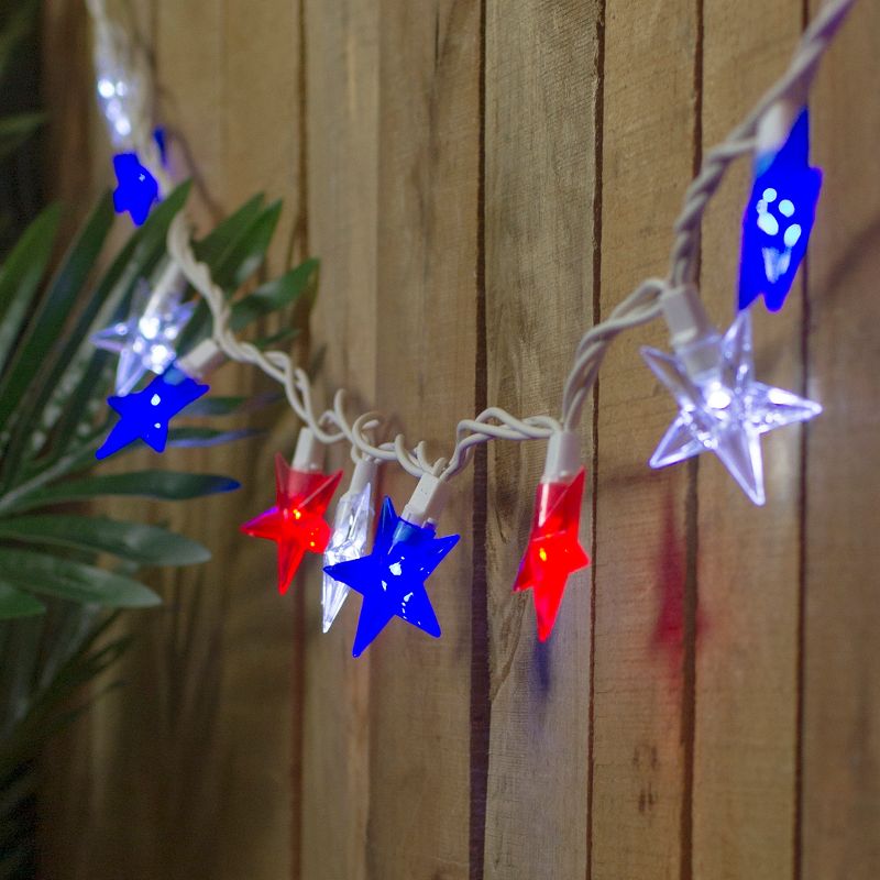 Display your patriotism this 4th of July with our string of red, white and blue LED star lights. The UL listing allows for these to be used both indoor and outdoor. So whether you want to string the lights along your mantel, or around your patio, these versatile lights will allow you to do that. Also perfect for Memorial Day decorating.