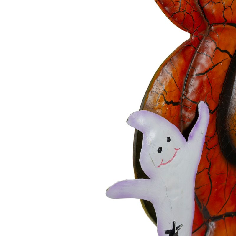 If you want a perfect addition to your yard decor this Halloween, this decoration is for you! The crackled paint on the pumpkins gives it an aged feel and is perfect for your spooky lawns or just to greet your guests! Cute little ghosts are happy and welcoming on the sides of the pumpkins. Add this to your Halloween decor and festivities this fall season!