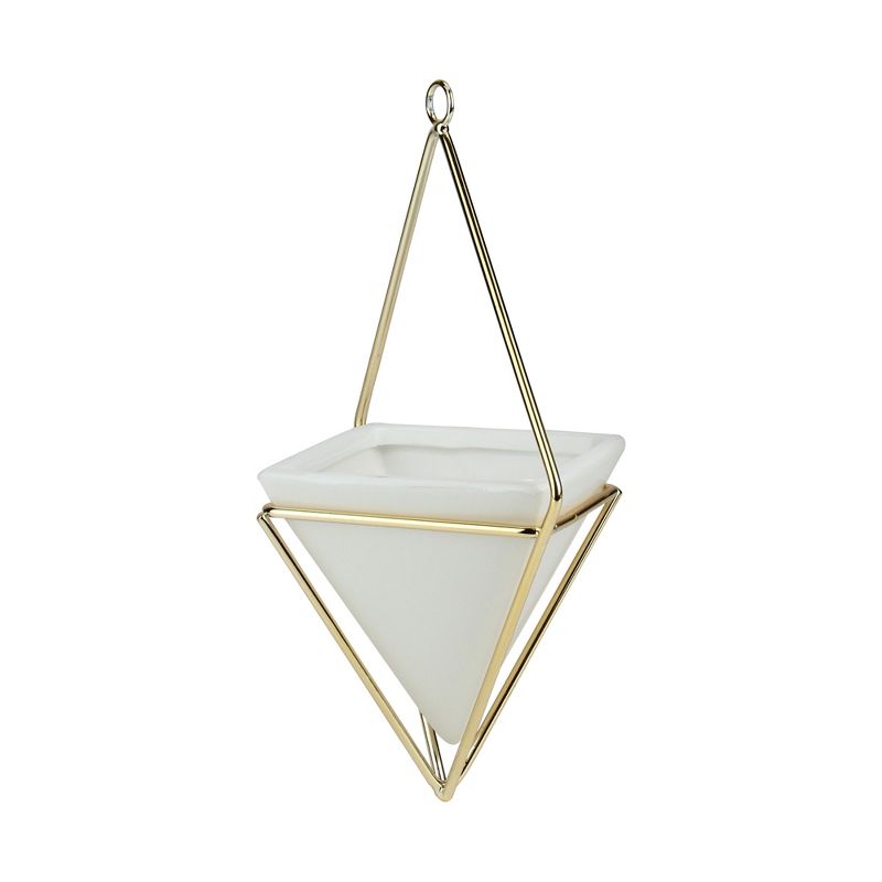 • Gold Colored And White Diamond Shaped Hanging Planter