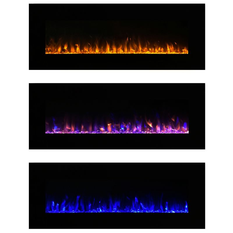 •FIRE & ICE LED FLAME- With an ambiance-enhancing flickering LED flame in 3 colors (orange, blue, or orange/blue mixed) over a bed of stone pebbles or acrylic crystals, this electric fireplace will instantly transform the mood of your living space.