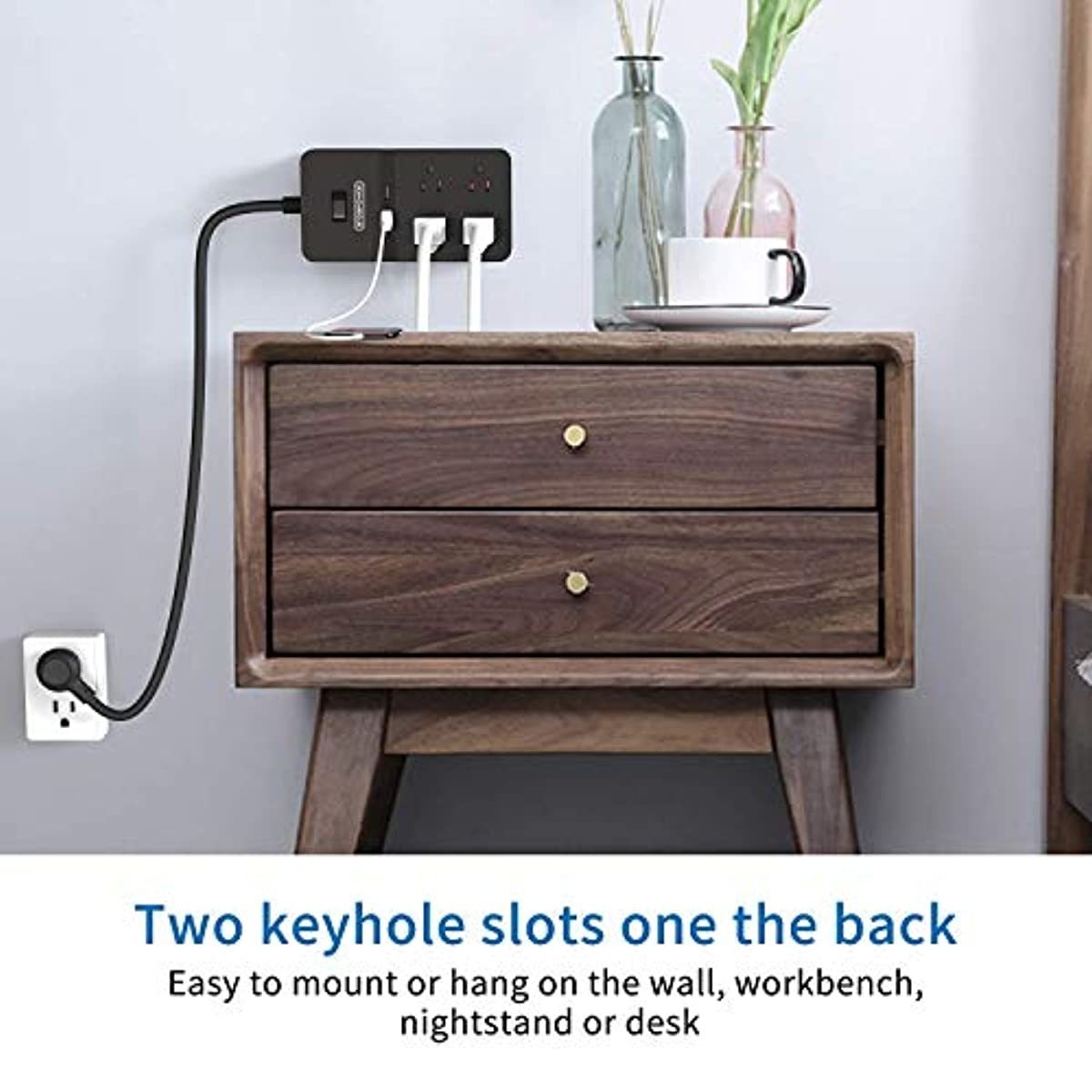 This very versatile power strip has 2 USB ports for charging needs as well as 3 regular grounded outlets which makes it