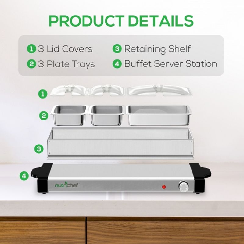 Impress the in-laws and win the neighborhood pot luck with ease thanks to the NutriChef Portable 3 Tray Electric Hot Plate Buffet Warmer Chafing Serving Dish 4-pack.
