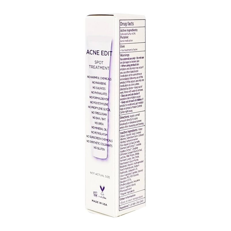Target your acne spot on. Powerful Sulfur cartnears acne on contact as well as helps inhibit future breakouts. Probiotics help balance skin while ginger and licorice help to soothe irritated skin.