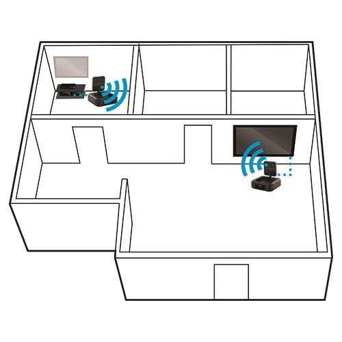 This wireless system broadcasts real time audio and video up to 225ft (maximum transmission is under clear line of sight). It also transmits through walls, ceilings, and floors (range/signal quality will decrease based on environment). Watch TV in any room wirelessly with crystal clear sound and video. The directional antennas ensure an optimal radio frequency signal and minimize interference from other devices.