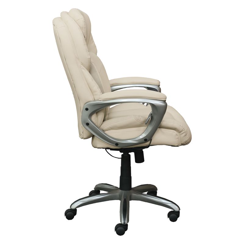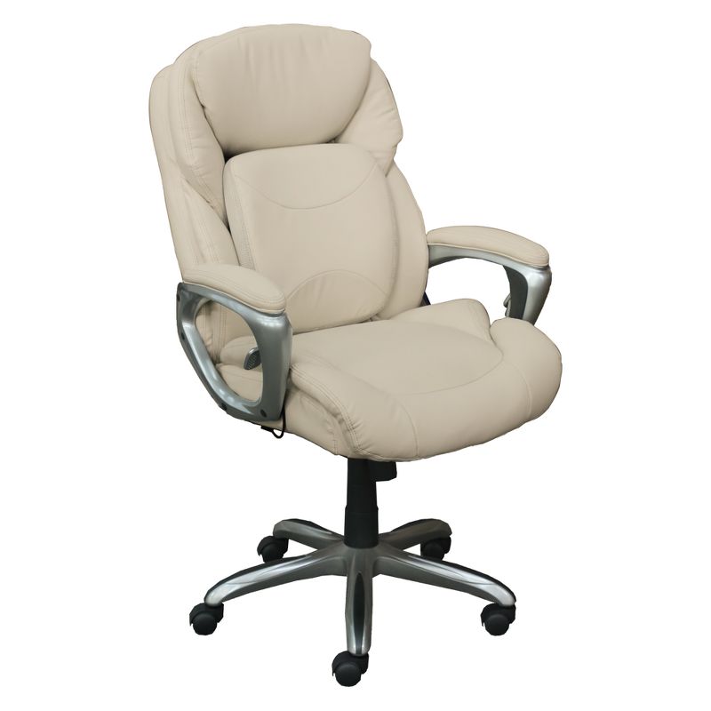Experience relief with the Works Executive Office Chair with Acucell Technology from Serta. This chair has a durable build and is packed with features like adjustable height and tilt with armrest-level controls. The ergonomically contoured upholstery features cartneared Acucell technology, creating a light acupressure effect that helps to energize the mind and support the back. Whether you're overseeing expenses in your home office or a whole team in the workplace, you might be tempted to work a little later just to steal a few more minutes in this chair.