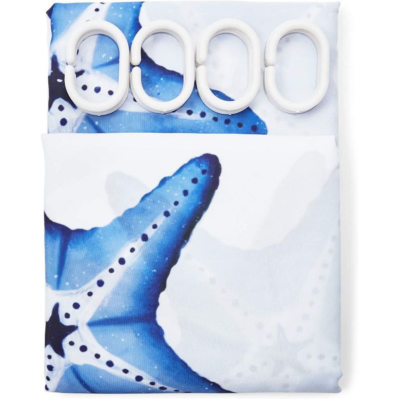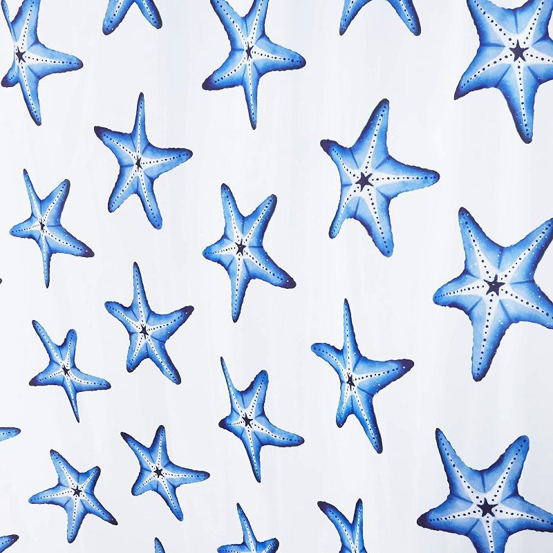 • VERSATILE DESIGN: This nautical shower curtain features blue starfishes; an ideal choice for bathtubs and showers at home, campers, hotels, motels, and dorm rooms