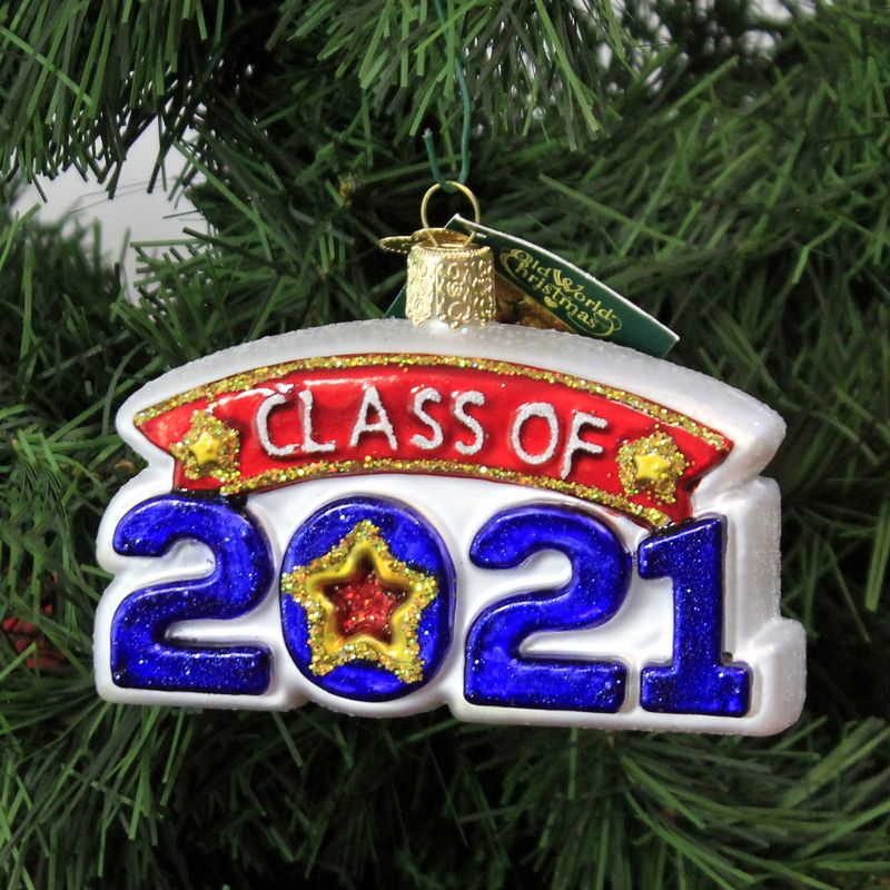• The Class Of 2021 Hanging Ornament Is Painted In Red, White And Blue Colors. The Banner Is Red And Accented In Gold Glitter With The Words "Class Of " In White Superfine Glitter. The Year 2021 Is Painted And Glittered In Blues. The "0" Has A Star Reflector Accented With Red & Gold Glittered.