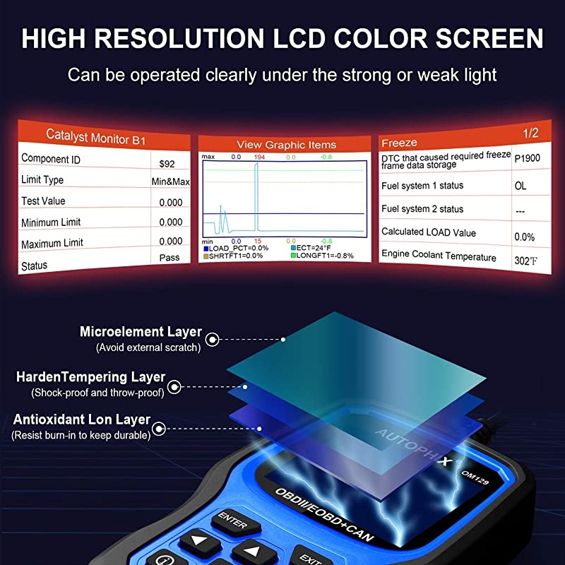 ***** **********Best Quality Guranteed. *****FULL OBD SERVICE MODES SUPPORTEDLocate bad O2 sensor, turn off check engine light, reset monitor, view freeze frame data. The obd2 scanner can quickly read and erase DTC (engine fault codes). Access to emissions readiness status, on-screen DTC definitions, built-in DTC look up library, allow you accurately determine causes of the check engine light, and turn off the MIL (Malfunction Indicator Lamp). advanced On-Board monitoring test and retrieves vehicle information (VIN). *****ACCURATE BATTERY CHECKGather real time battery voltage, analyze information automatically in no time and display results in graph, instead of a direct result on the screen that an ordinary code reader does, which will ensure that you can access and analyze the accurate live data and determine the battery's health status or expected remaining life.