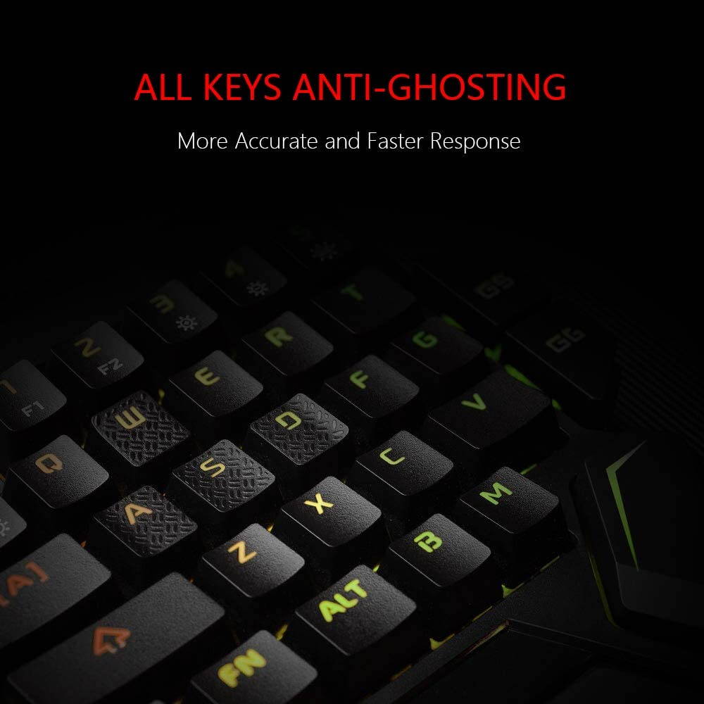 Mechanical Keyboard- k50 structured with new type blue switch, this blue switch is reinforced at the joint, which makes the key more stable and durable. The mechanical keys offer medium resistance, audible click sound, and crisp, precise tactile feedback for ultimate gaming performance. Macro Recording Keys-The G1 - G6 keys have the macro recording function, you could record the contents and create complex macros to take full command of your computer. How to use macro definitions: 1. If there is no recording in G1, press FN + G1 to enter the recording state; 2. When the G1 lamp is flashing, you can input the recording content; 3. After input FN + G1, the G1 lamp will return to the normal mode; 4. Then press FN + G1 to clear the recording content and turn it into F1 function. RGB Backlight-Built-in 9 backlight colors, 5 backlight modes, press FN+5 to change the color of the backlight, press FN+Tab to switch the backlight mode. |