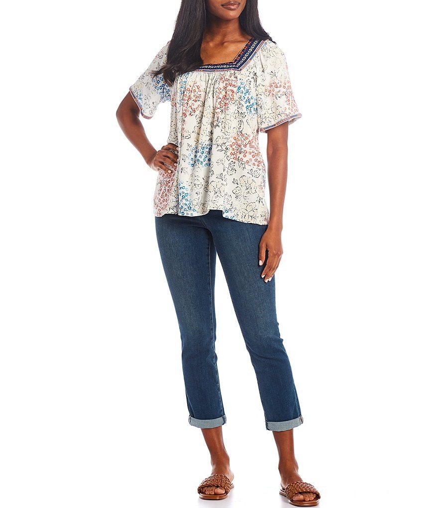 - Jacquard square neckline