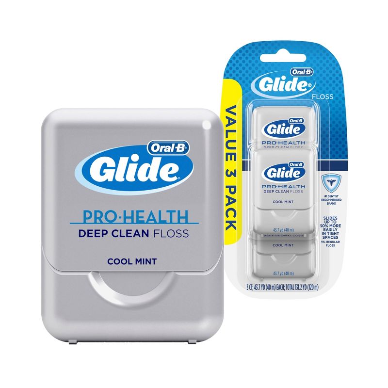 Oral-B Glide Pro-Heath Deep Clean Floss helps remove plaque between teeth and below the gum line with a cool burst of clean feeling. The silky-smooth, shred resistant texture slides up to 50% more easily in tight spaces vs. regular floss. Satisfaction Guaranteed, or your money back. For guarantee, call 1-877-769-8791 within 60 days of purchase with UPC and receipt.