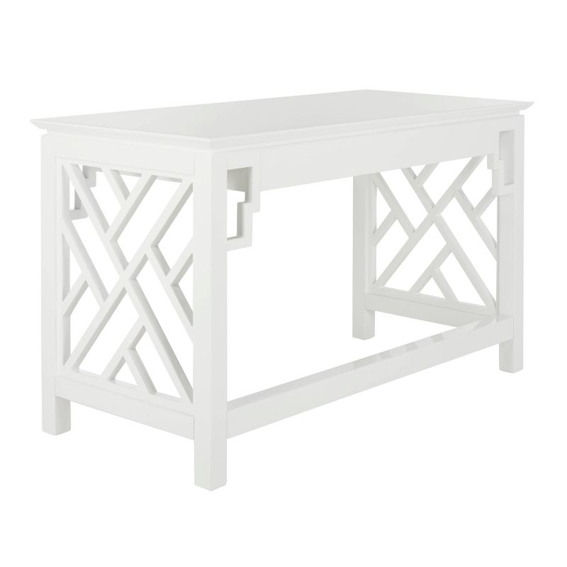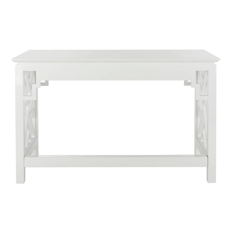 Elegant and delightful, this contemporary lacquer desk was inspired by priceless Asian antiques. Designed with a radiant glossy white finish that highlights its intricate details such as its interior drawer and elegant hand pulls, it’s a modern heirloom that transforms any home office. The cool mod design and metallic details of the Oren Lacquer Desk by Safavieh makes it a perfect addition for contemporary, modern, or transitional rooms. This item comes with soft closing drawers and does not require assembly.