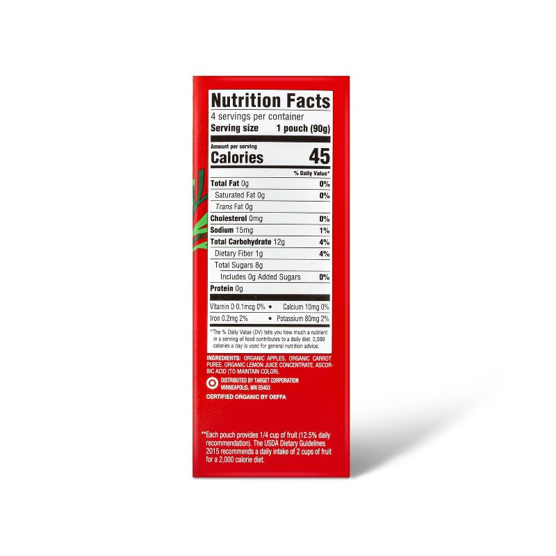 Packed full of tasty fruit and veggie flavors, the whole family will love snacking on Organic Apple Carrot Fruit PUree Pouches from Good & Gather™. This fruit puree pack comes with four on-the-go pouches with a squeezable design, perfect for even little ones to enjoy. Each organic puree pouch contains 1/4 cup of apple fruit puree* in a yummy apple/carrot flavor, without any synthetic colors. Plus, the resealable cap helps in the case of any leftovers. Whether you add one to your kiddo's lunch, enjoy one as a midday treat or grab a pouch when heading out the door, these squeezable applesauce pouches are sure to satisfy snack cravings.