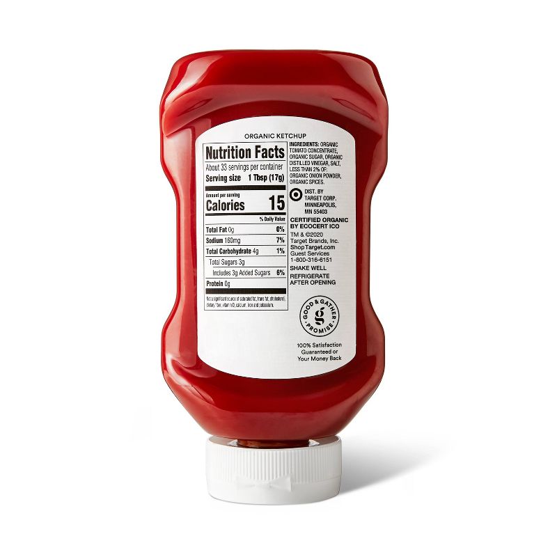 Gathering the whole family together for a picnic or cookout isn't complete without this Organic Ketchup from Good & Gather™. This tangy ketchup is perfect for dipping French fries or as a topping for burgers, chicken strips or hot dogs. It offers a tangy flavor made from rich organic tomato concentrate, organic sugar, organic distilled vinegar and spices. This ketchup is made with no high-fructose corn syrup and no artificial colors, flavors or preservatives. Whether you use this ketchup as a base for creating your own sauces or as a tangy dip on its own, it offers a classic taste your whole family is sure to enjoy.