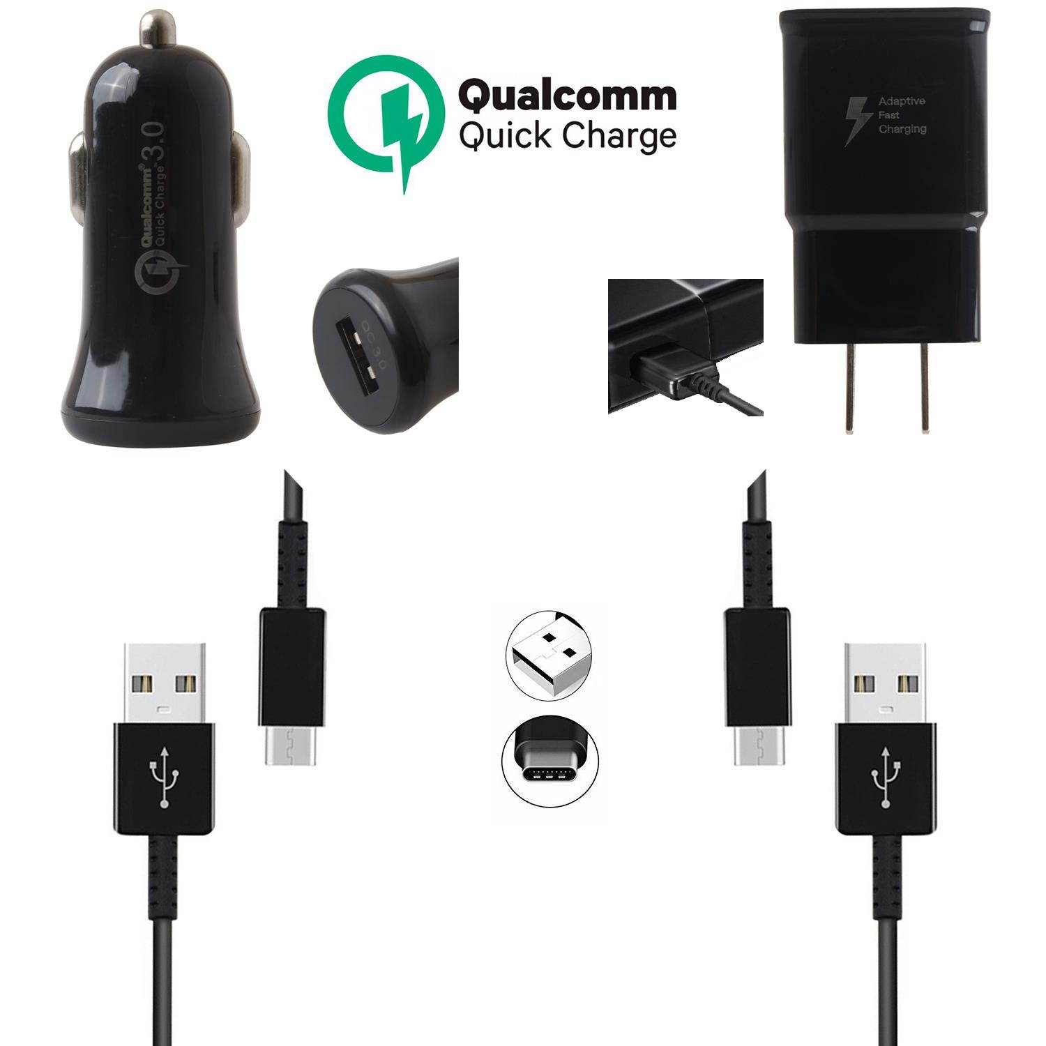 Adaptive Fast Charger Kit,Original Samsung Wall & Car Adapter + 2 x 4 Feet Type C USB Cable
