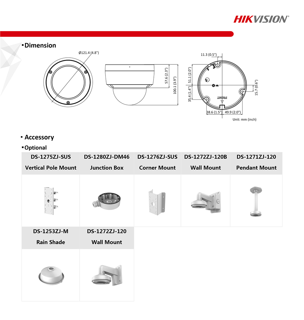 ·Camera DimensionØ121.4 mm × 100.1 mm (Ø4.8" × 3.9")