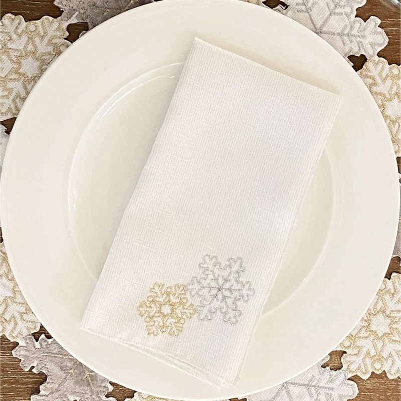 The Ornate Snowflake holiday and winter napkin is the perfect solution to your seasonal decorating needs. This design features beautiful cutwork snowflake to create the perfect holiday look. Excellent for special occasions, events, parties, family gatherings and everyday use during the holiday season. Soft and durable fabric can be ironed to release stubborn creases and make your napkins wrinkle free. Hemmed edge adds a finished look and prevents wear and tear.