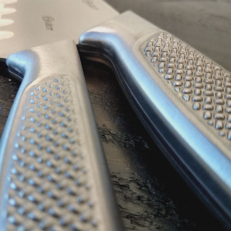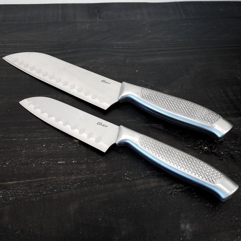 The Edgefield 2 Piece Stainless Steel Santoku Knife Set features stainless steel blades that are designed to resist stains and rust. The edges stay extremely sharp for easy slicing and cutting, and are easy to re-sharpen. The oval divots on the blades prevent foods from sticking, making slicing faster and easier.