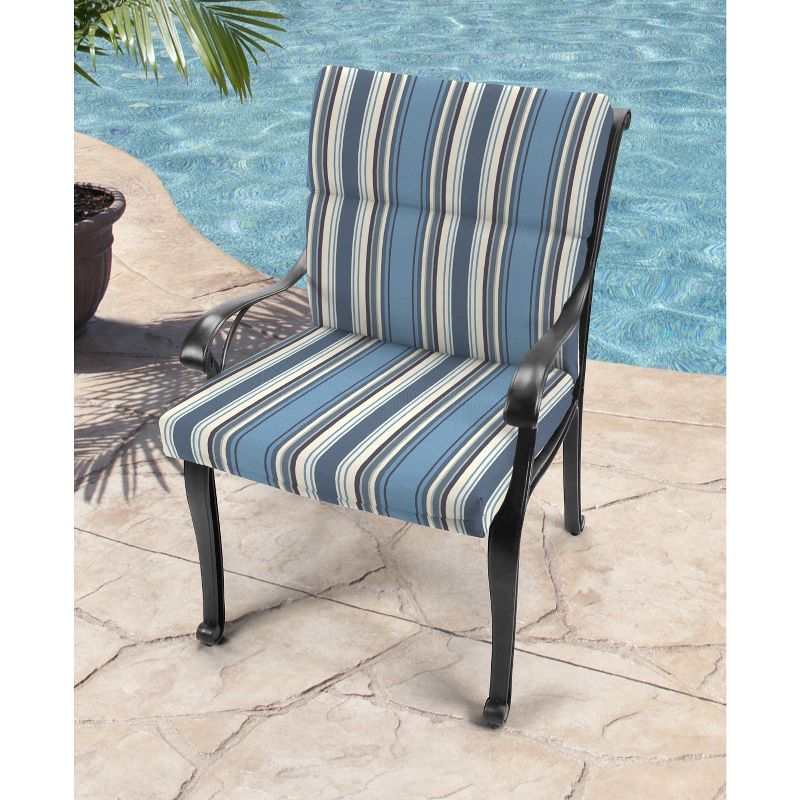Add a fun pop to your outdoor space with this Outdoor French Edge Dining Chair Cushion from Jordan Manufacturing. This weather-resistant chair cushion makes the perfect addition to your patio furniture and will give you use for seasons to come. The attached ties keep it in place so you can stay lounging comfortably.