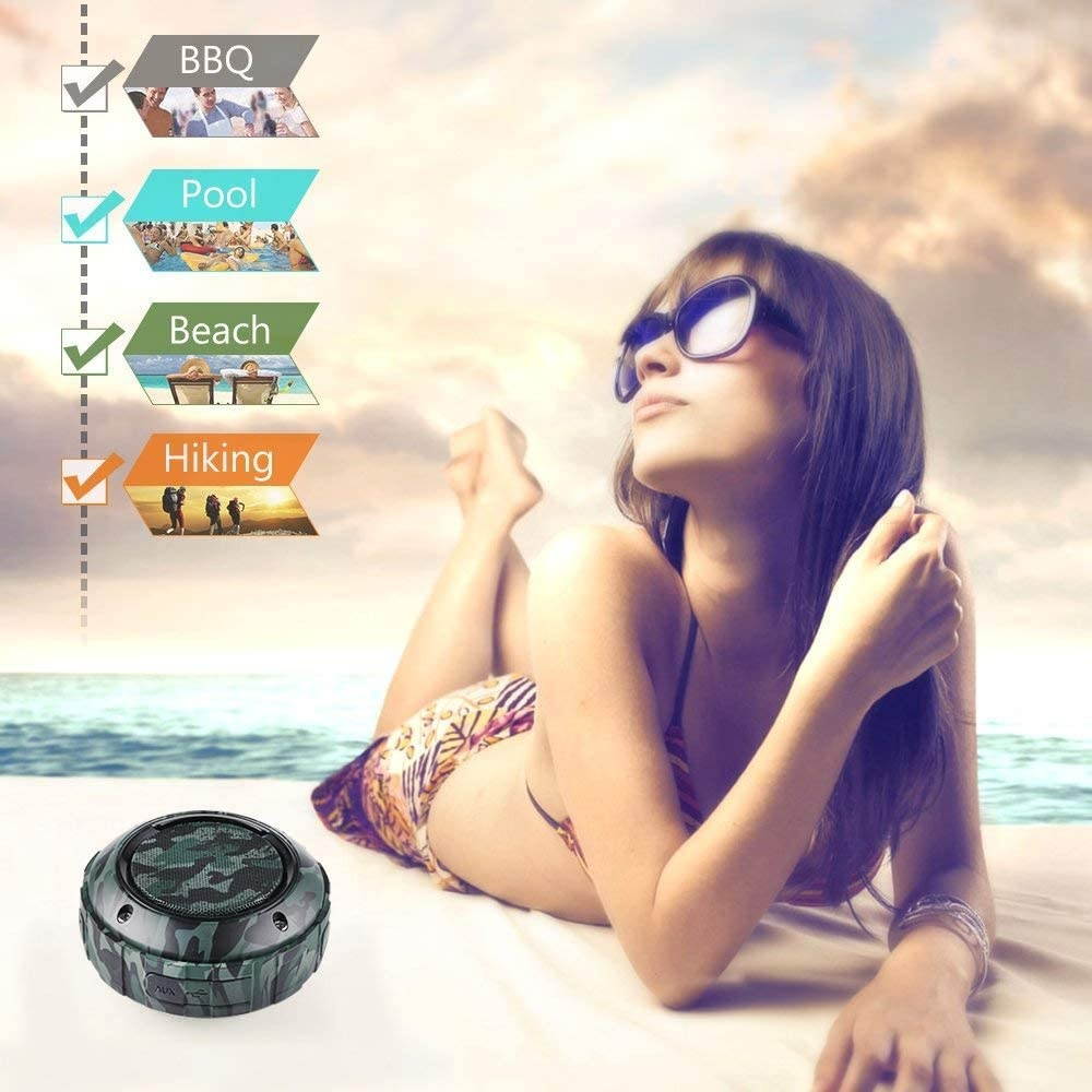 --The size of the speaker is Ultra Portable, Ultra Lightweight. You can enjoy high quality music outdoors easitly, such as beach, BBQ, Pool, Camping.