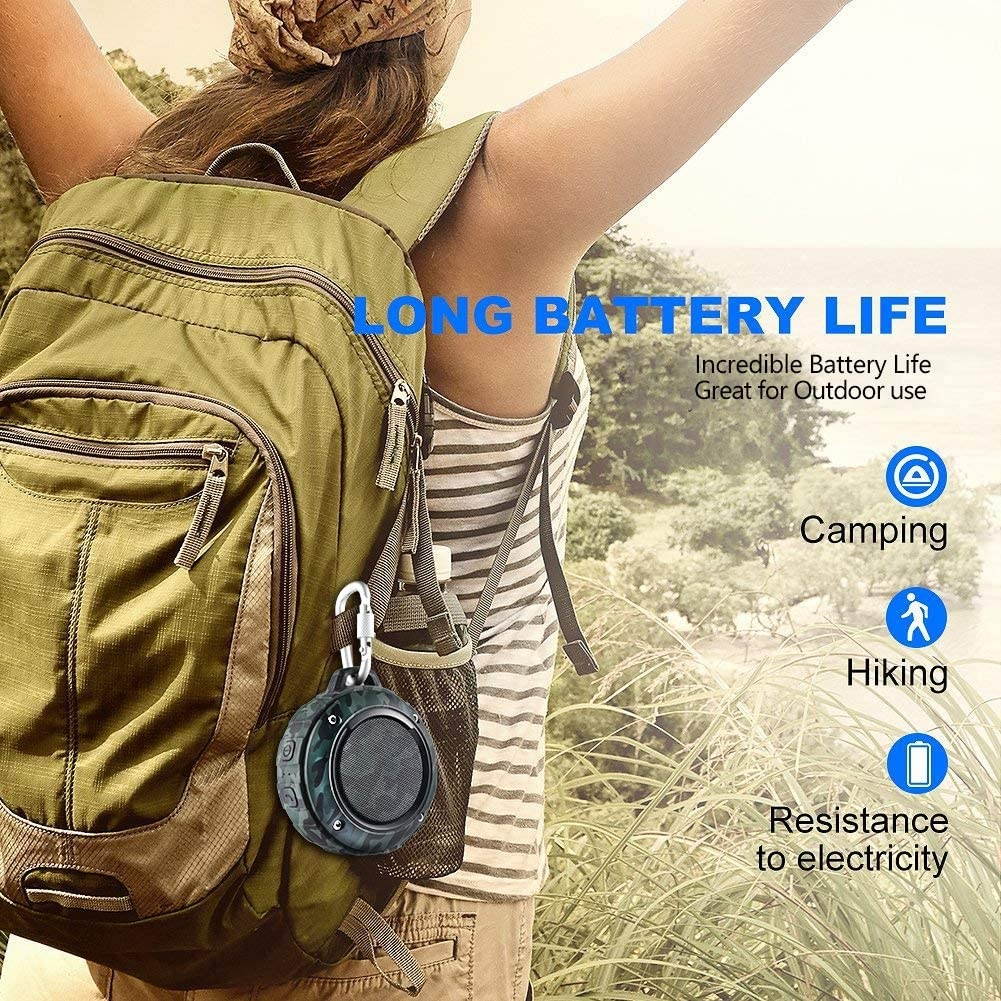 --The waterproof bluetooth speaker has high capacity battery. It can play about 4 hours of continuous use.