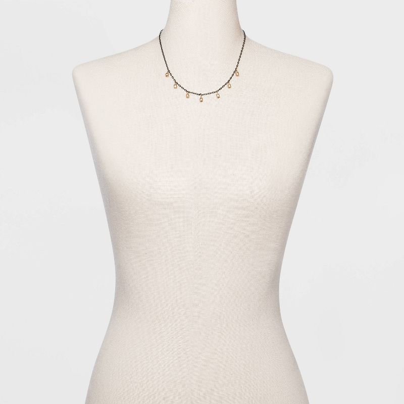 •Gold-, silver- and oxidized-tone chains give you a mixed metal look
