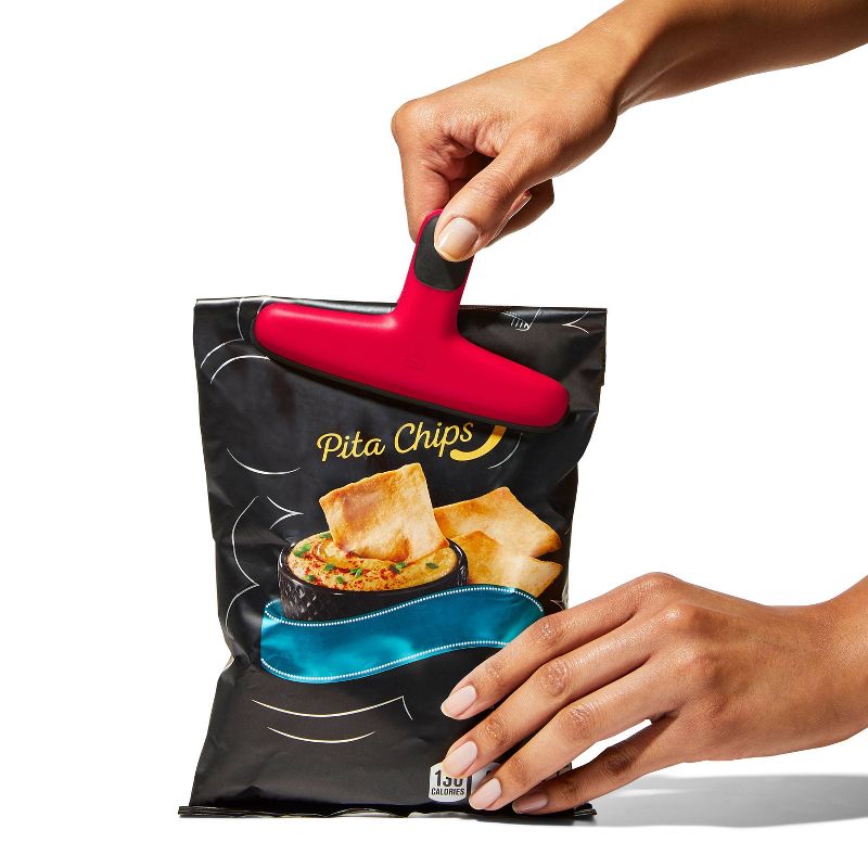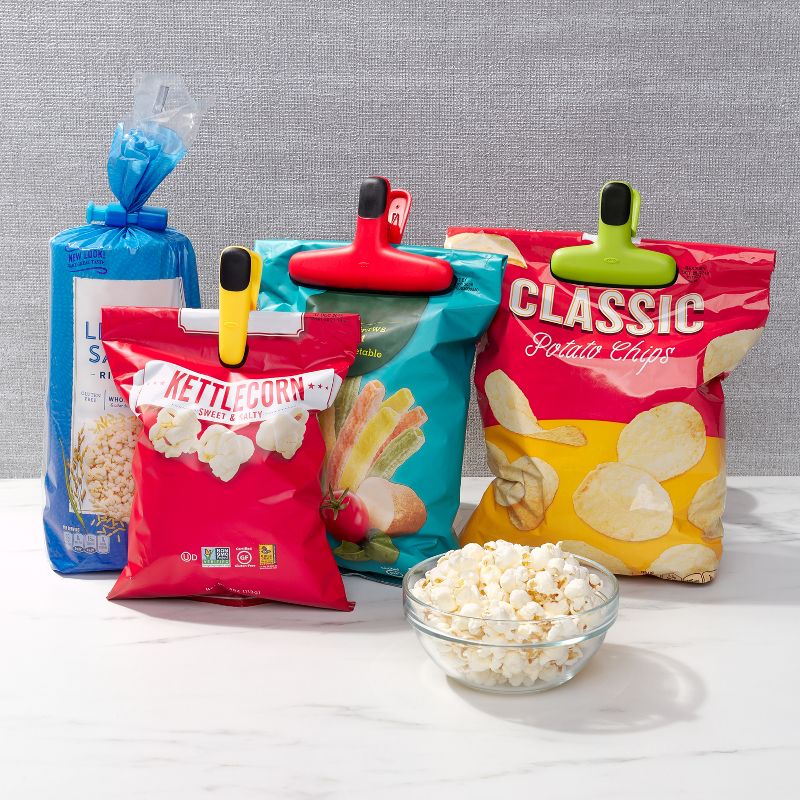 Help keep your food fresh with the Seven-Piece Food Clip Set from OXO. The set includes one large bag clip, two medium bag clips, three small bag clips and one bag cinch. The cinch is perfect for loaves of bread and bags of veggies, while the large and medium clips are ideal for chips, flour and more. The small and medium clips have magnets so you can store them on the fridge when not in use.