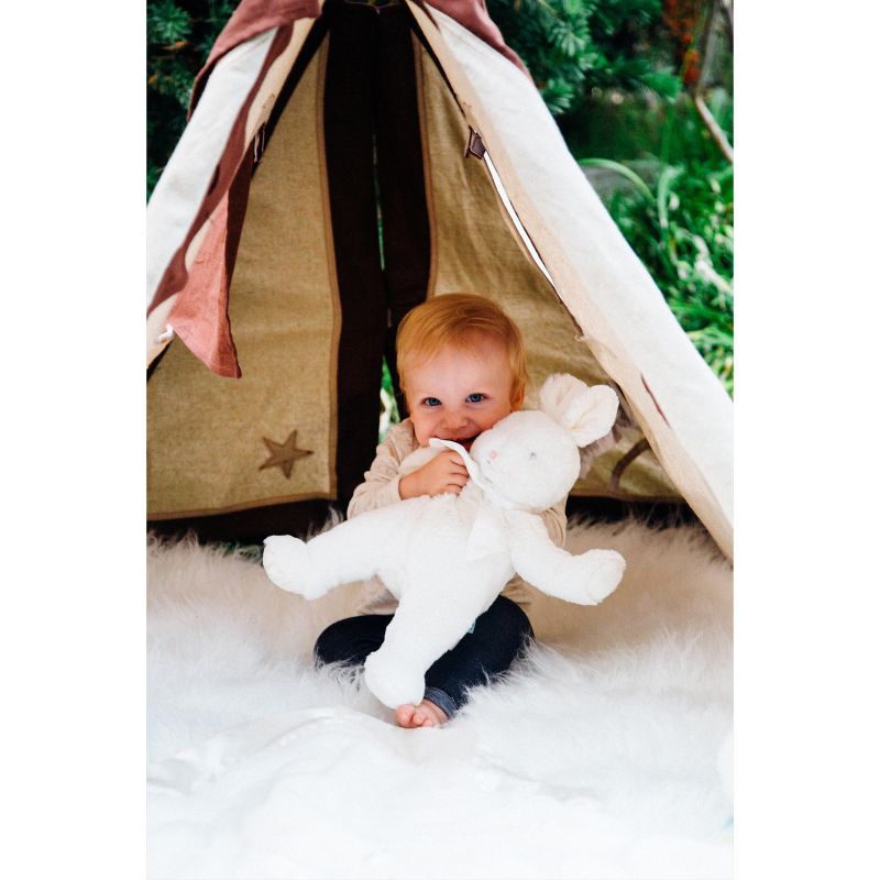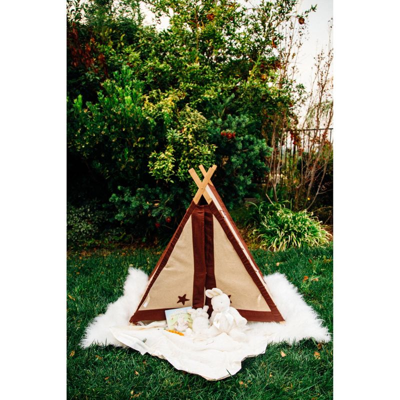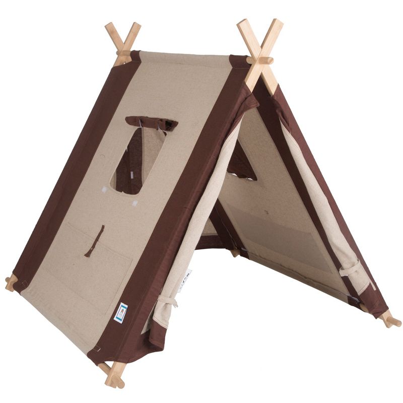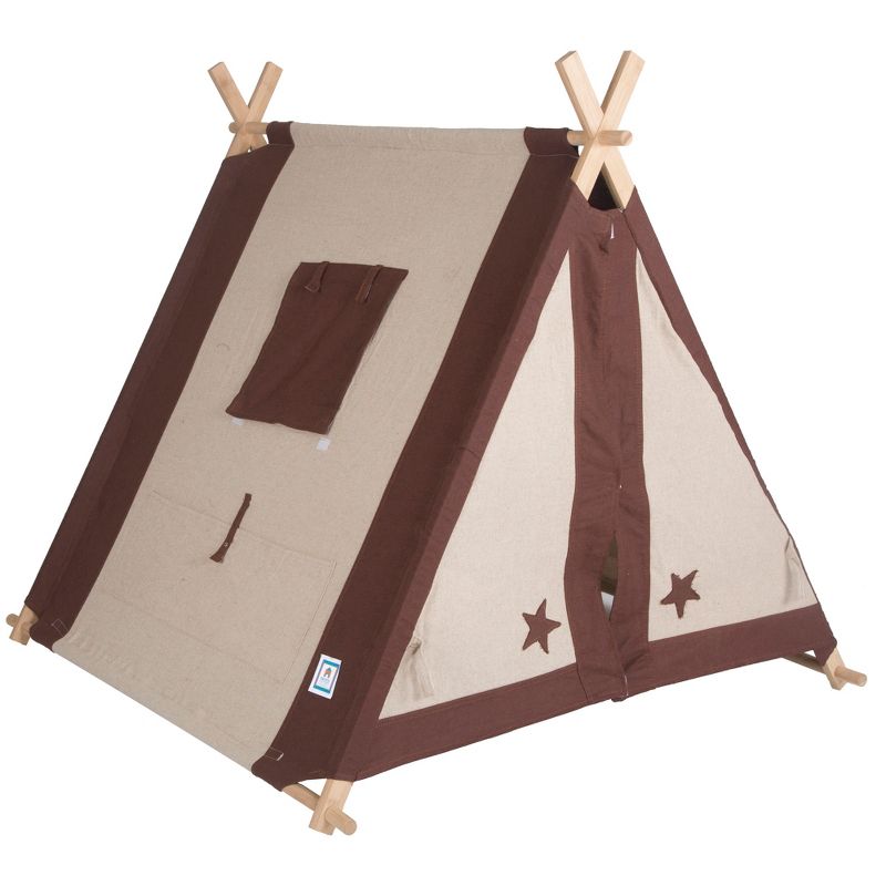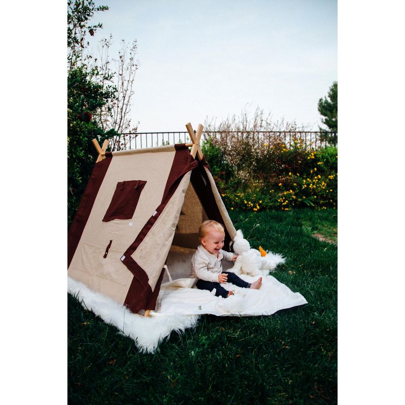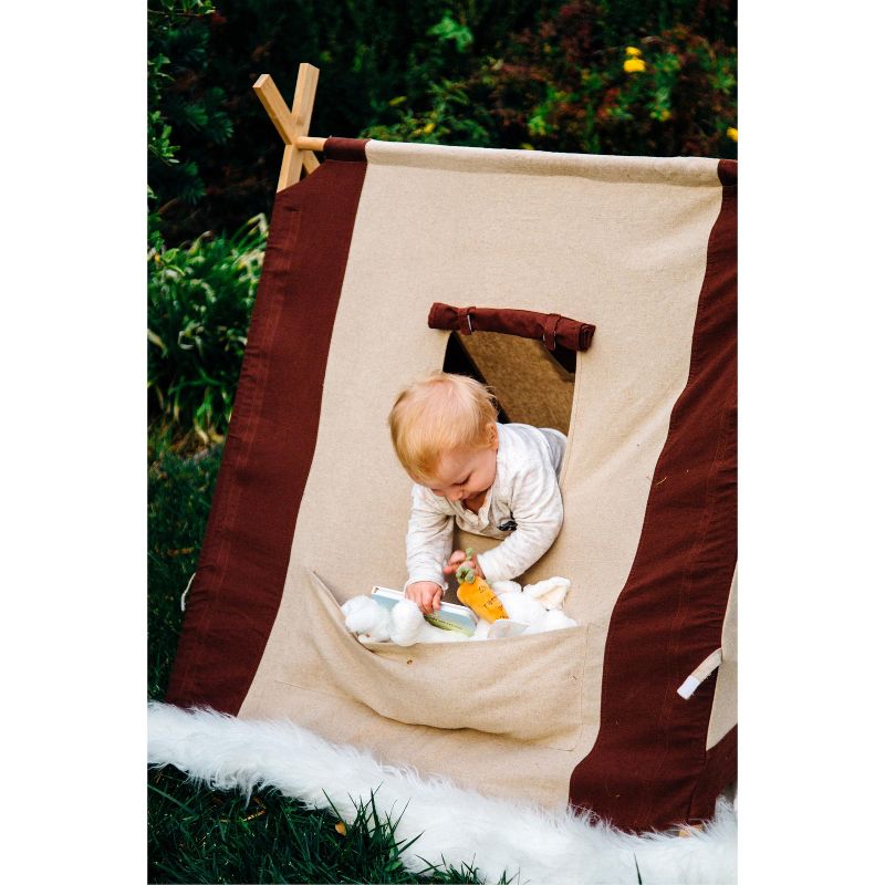 Looking for the perfect A-Frame tent that is sure to complement any living space? Look no further! Our Natural Linen A-Frame Tent keeps minimalist design at the forefront by utilizing neutral tones with a simple star sewn onto each door panel and a pocket for storing toys. At 44.5" D x 43" W x 42" H, this tent has plenty of room for playing inside while natural light streams through the roll up window. There is also an open floor to allow for imaginative play and easy storage, no matter the terrain.