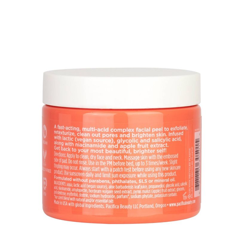 Feeling dull? Peel your way to brighter skin with Pacifica’s first multi-acid-complex peel pads. Pacifica’s Glow Baby Brightening Peel Pads 10% AHA + BHA fast-acting combination of [vegan] lactic, glycolic and salicylic acids work to exfoliate, retexturize and deep clean pores, revealing brighter, more glowing skin. Apple fruit extract helps add hydration to help soothe skin.