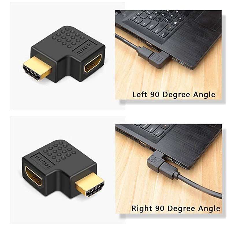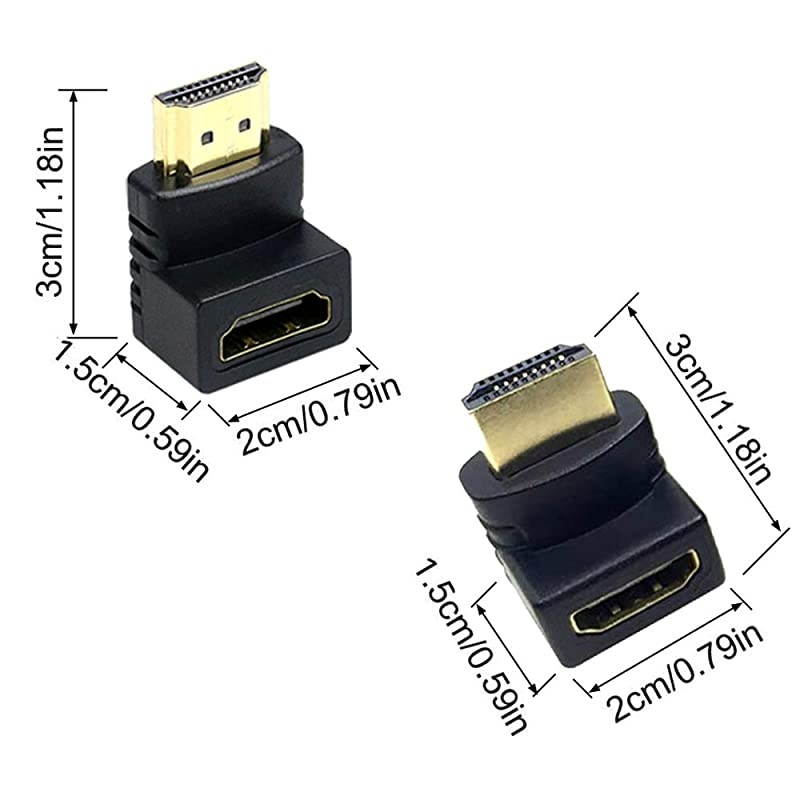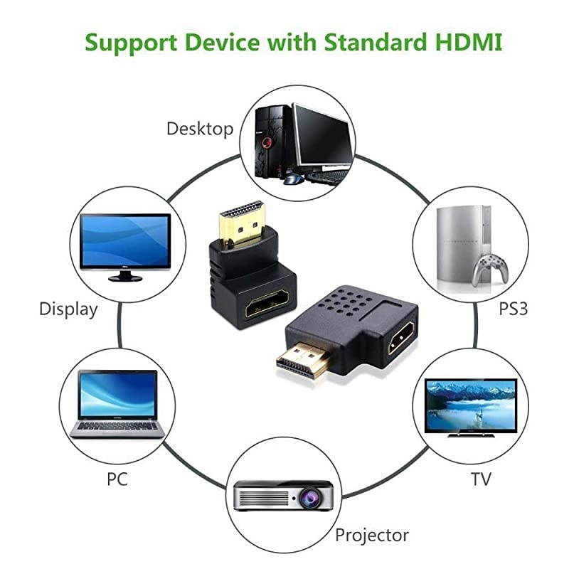Features: Suitable for situation that HDMI cable need to bent, such as when the distance between the TV and the wall is too close, you can use this HDMI adapter to connect to avoid the wall. These adapters can effectively protect your HDMI interface on the device, avoiding damage caused by frequent plugging and unplugging. It also relieves the strain on HDMI ports to protect your cable and device. Support resolutions up to 1920*1080, support Audio Return Channel, HDMI Ethernet Channel and 3D. Supports resolutions at 4096x2160, 3840x2160, 2560x1600, 2560x1440, 1920x1200, 1080p and etc. Supports uncompressed digital. 1, 5.1 or 2 channels audio. Supports 3D and Ethernet.