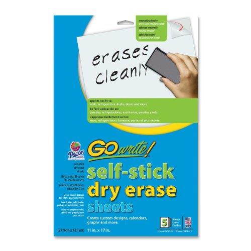 Dry-erase sheets feature ultra-removable adhesive on the back so you can create a dry-erase board anywhere. Stick to the wall, door, table, desktop or refrigerator. They are great for meetings, to-do lists, classroom activities and much more. Each sheet erases cleanly and has a full-adhesive backing. When removed, the adhesive does not leave residue behind. Dry-erase sheets are recyclable.