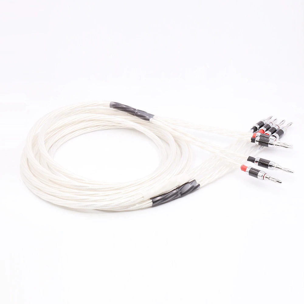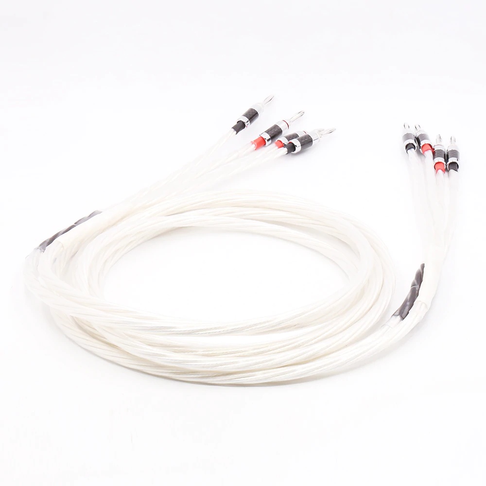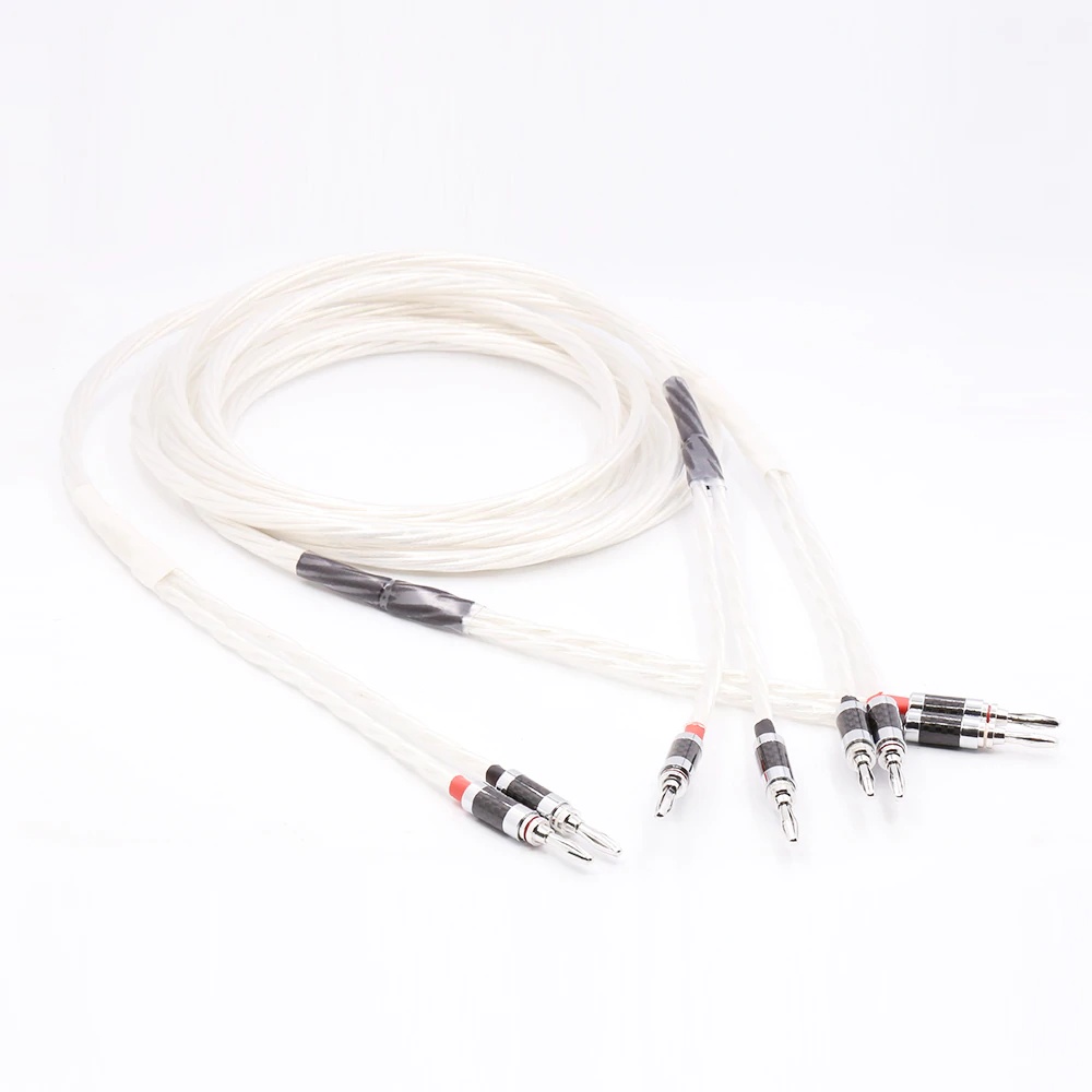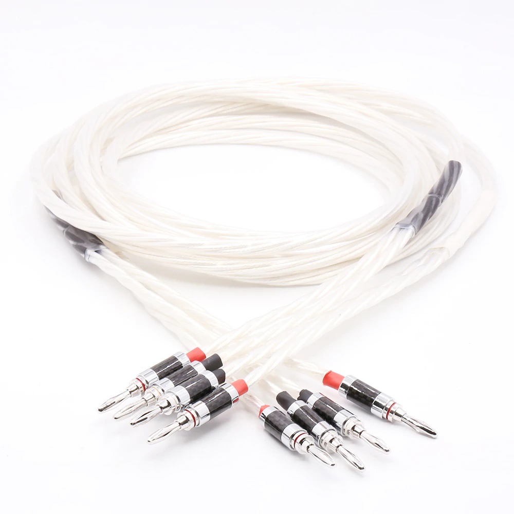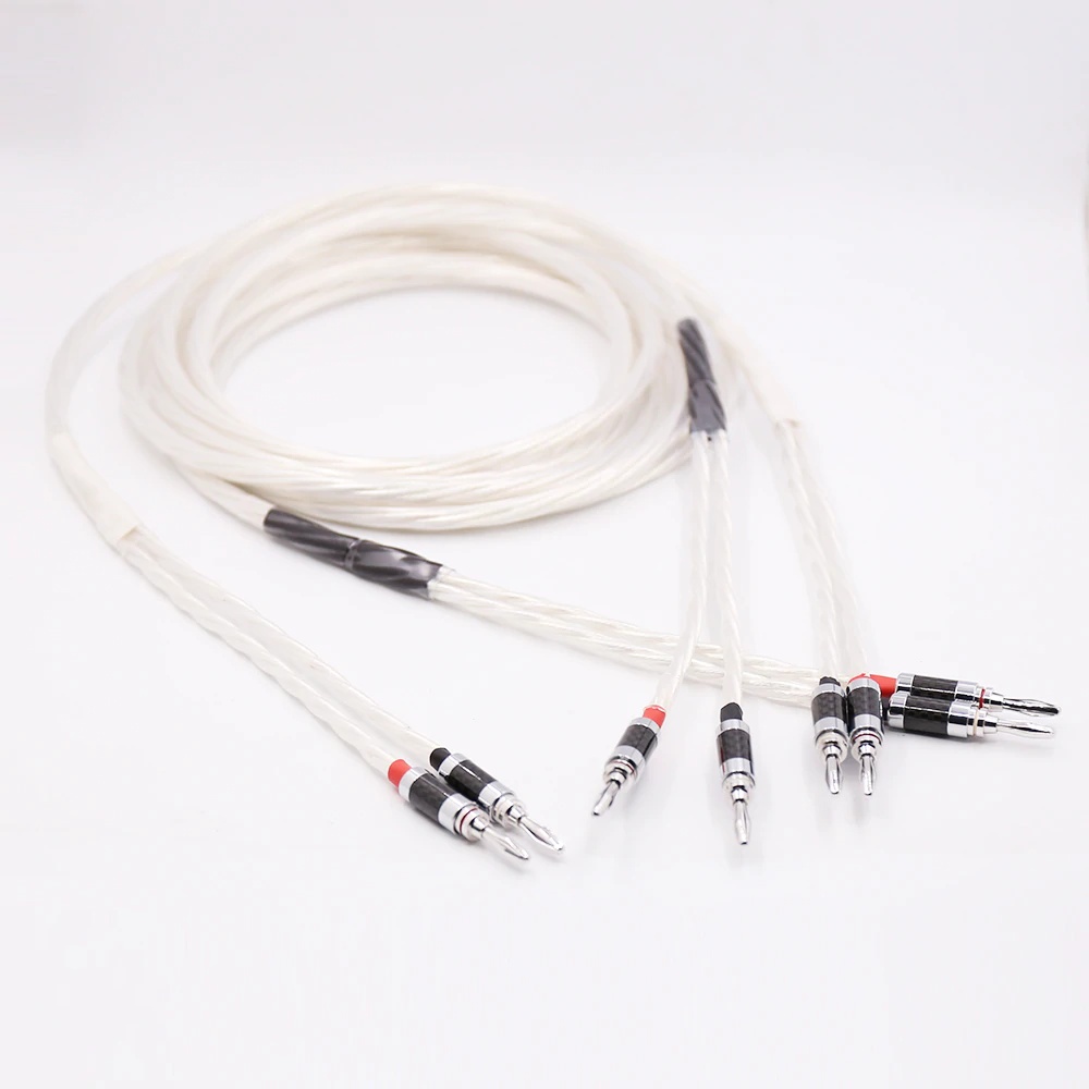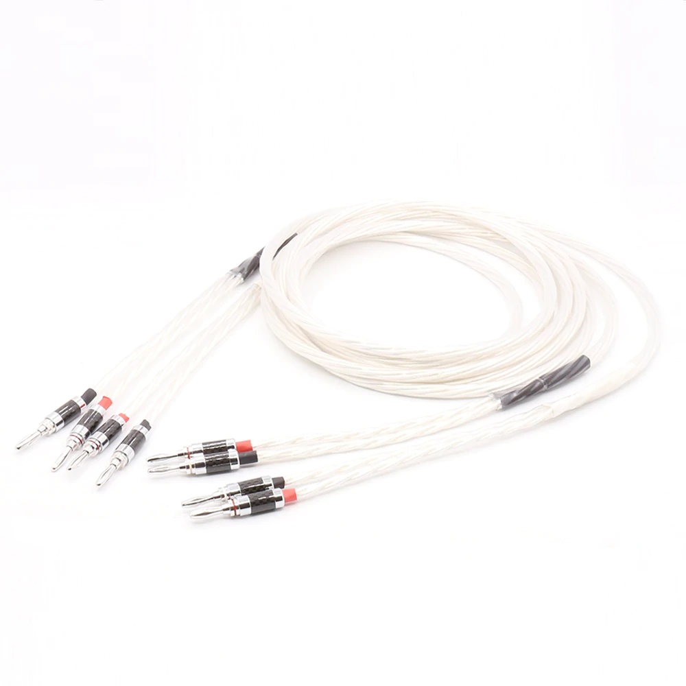 Pair Silver plated OFC Speaker cable with Carbon fiber Banana plug For High End Speaker