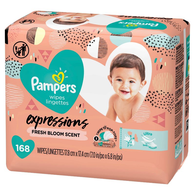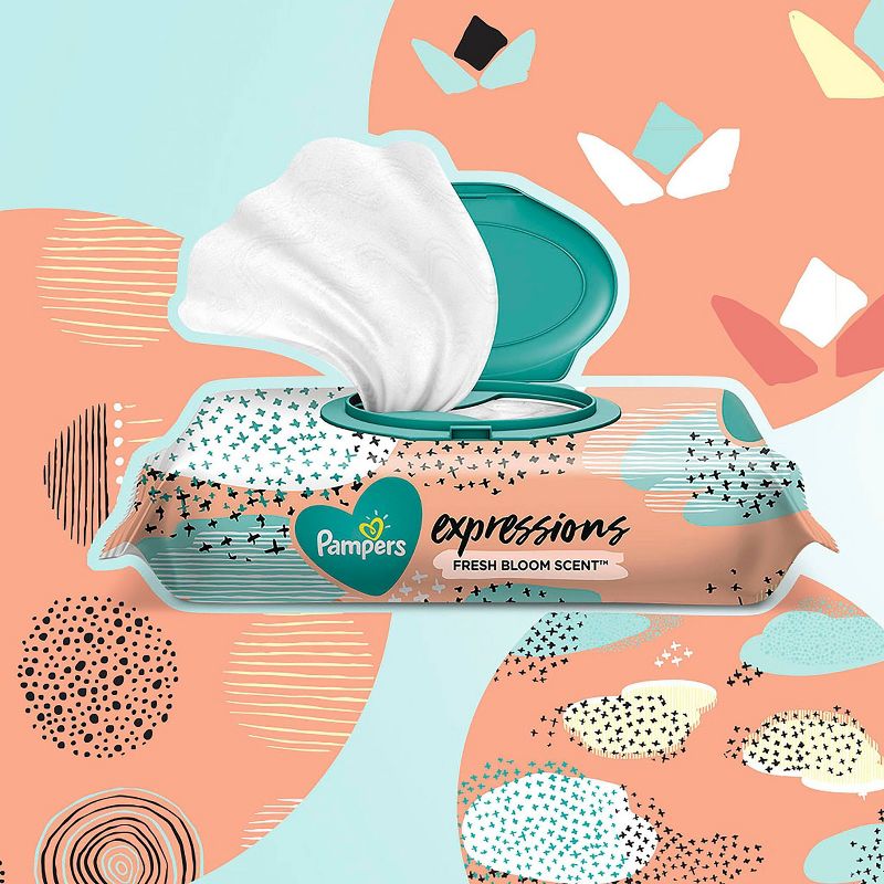 Now you can handle any everyday mess with style and freshness. Delightfully bright, Pampers Expressions Wipes Fresh Bloom scent is light, fresh and fragrant for an enjoyable clean. And when it comes to the look, you’ll go ga-ga for our designer print packs that are as expressive and fashionable as you are. Pampers Expressions Baby Wipes are exclusively designed with a one-wipe dispensing pop-top to prevent unwanted wipes from coming out of the pack, making it a breeze to clean hands, faces and more while out and about.