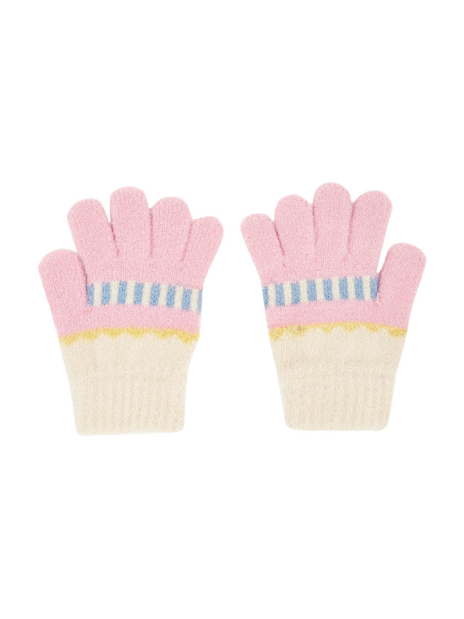Style your child in this delightful pair of gloves during their cold adventures and make every moment special. The primary aspects of these gloves feature a soft construction, ribbed cuffs and an appealing contrasting colour banding pattern for an adorable look. These gloves are crafted from a top-notch quality acrylic that will provide excellent comfort and keep your child snuggle all day long.