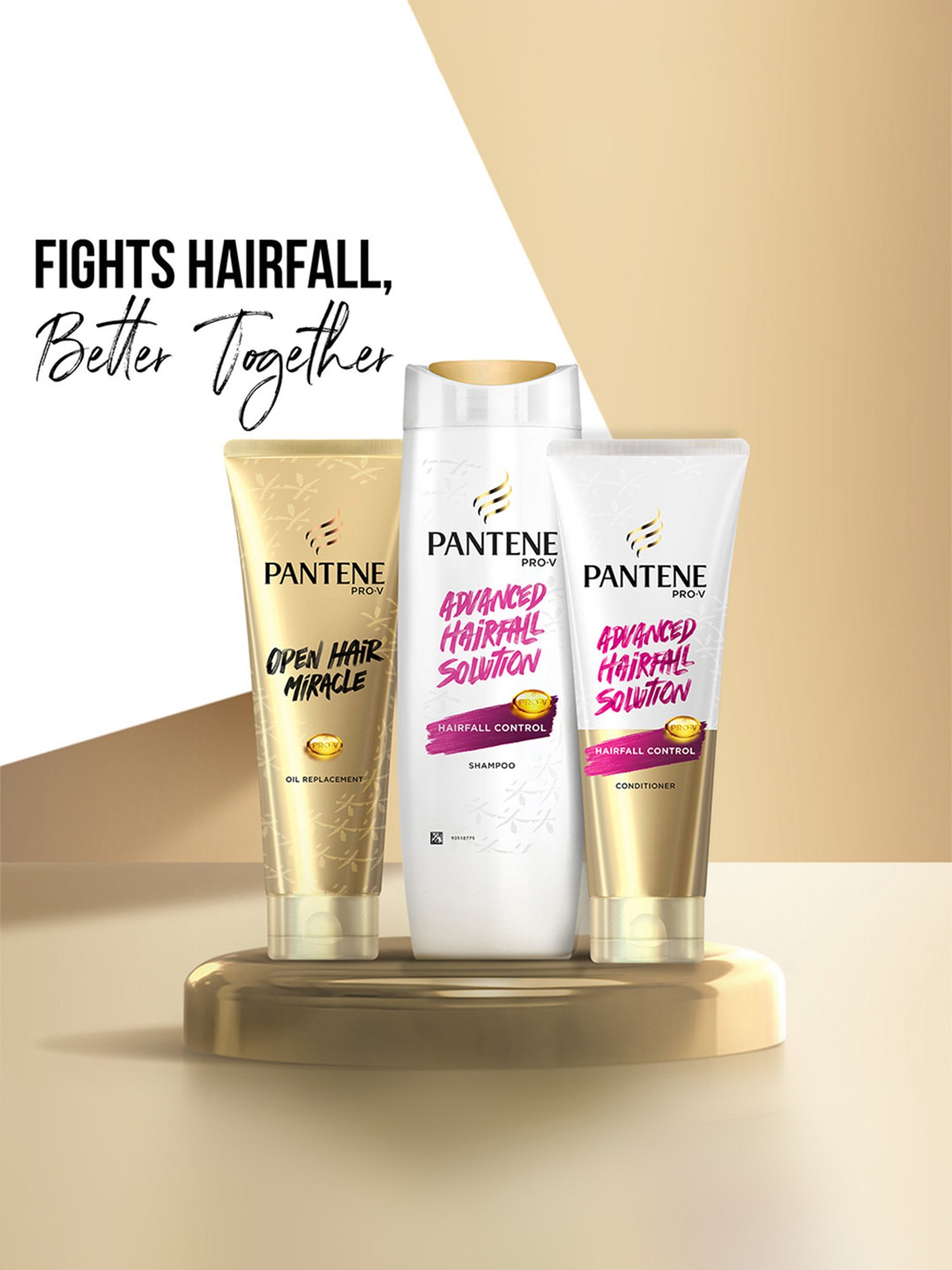 Pantene Advanced Hairfall Solution Hairfall control shampoo combines the age-old anti-Hairfall secret of fermented rice water with the revolutionary science of pro-V formula. It strengthens your hair from root to tip and reduces Hairfall for more open hair days. The new Pantene Advanced Hairfall Solution also provides protection against hair breakage and styling damage. For everyday use, try it with the Pantene Advanced Hairfall Solution conditioner and open hair miracle and experience more open hair days. Against styling damage vs non-conditioning shampoo due to breakage.