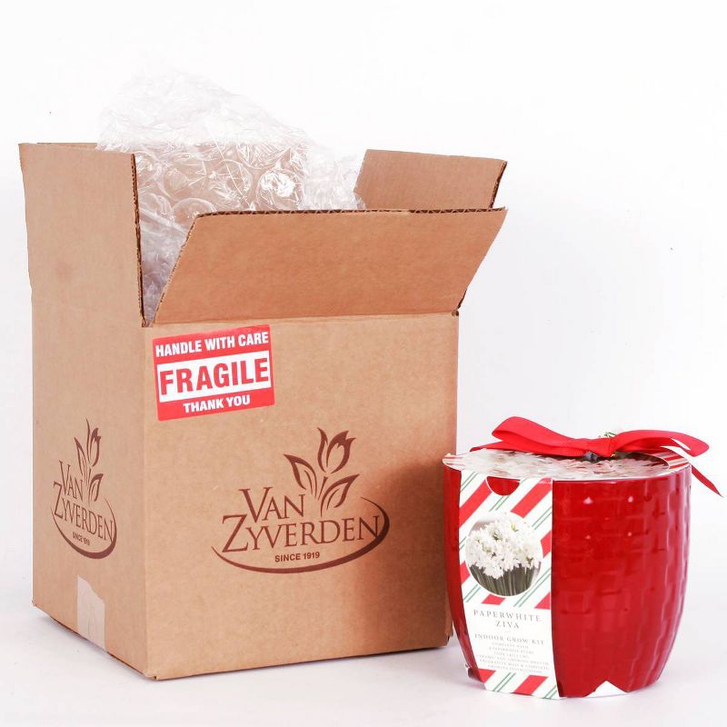 Our Paperwhite kit comes with everything you need to grow this exotic plant: four Paperwhite bulbs, a ceramic planter, planting medium and a set of growing instructions.