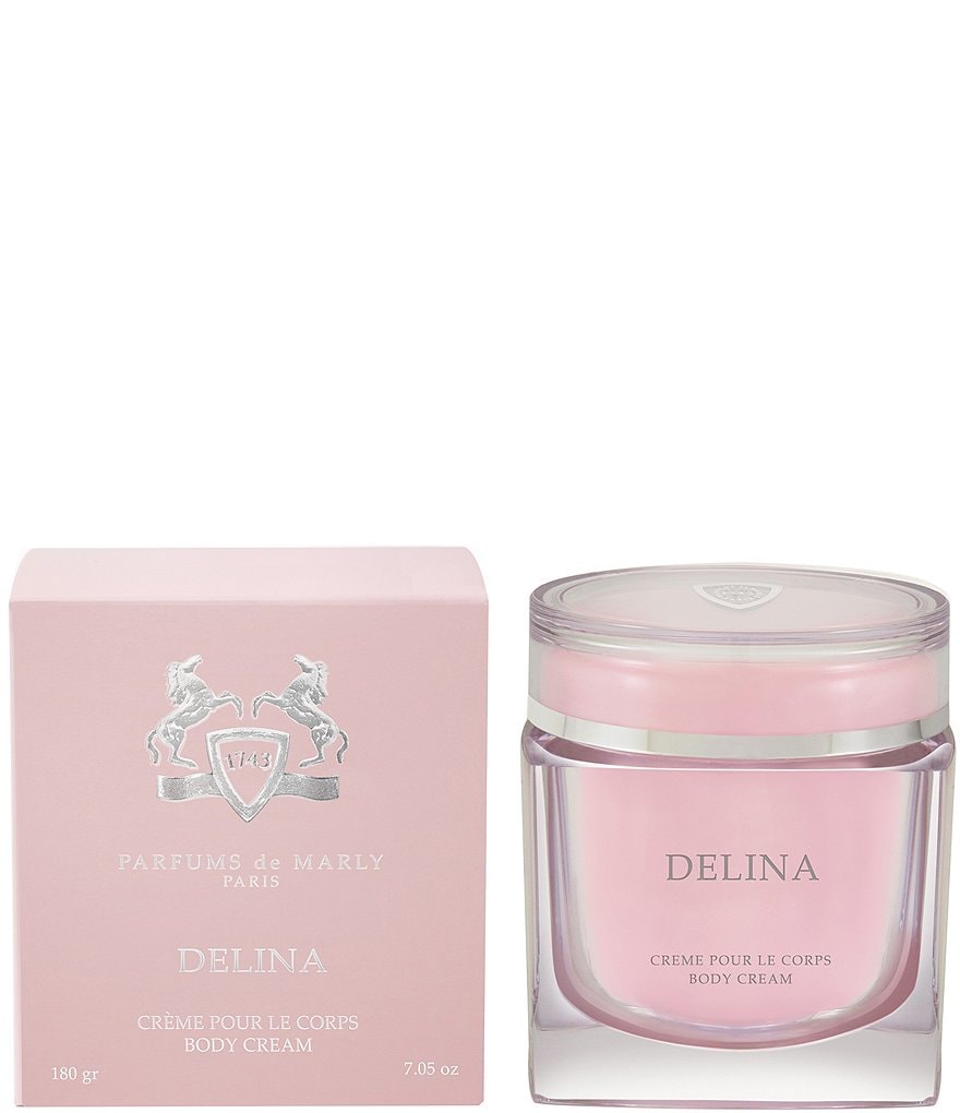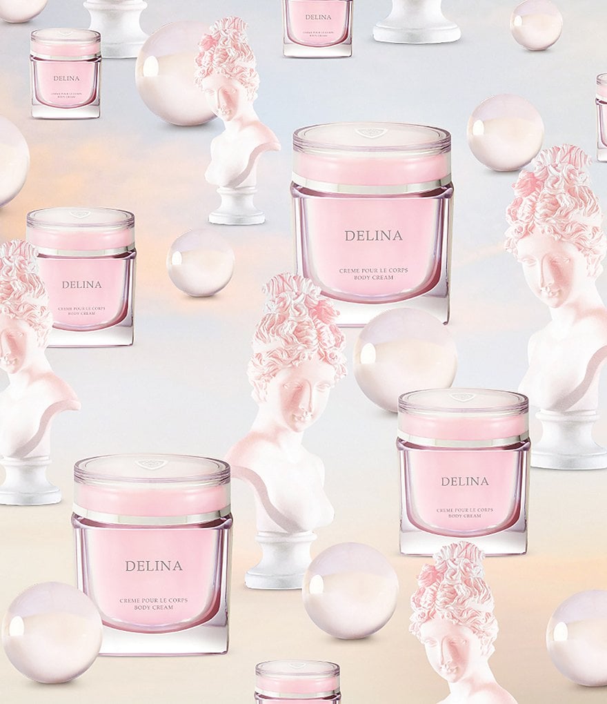 Its smooth texture penetrates delicately and envelops the skin in a fragrance veil. Nestled in a pretty jar, the Delina body cream is a charming asset for velvety skin.