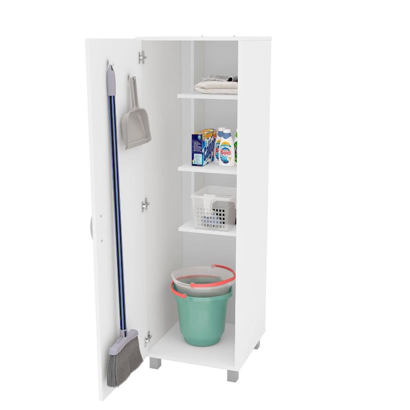 Add extra storage to any room in your house with the Paris Storage Cabinet from Polifurniture. This versatile cabinet’s simple modern design and white finish will fit with any current home décor. The 3 fixed shelves, 1 large open space and 2 door hooks will keep all your items neat and organized. Constructed from engineered wood with a resistant melamine finish.