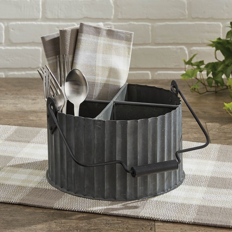 Reminiscent of times long ago, this traditional utensil caddy adds a sweet vintage appeal to your decor. Use it for a variety of your household needs in any room to experience its effortless versatility. This caddy is made from durable iron that adds a rustic farmhouse flavor to any home.