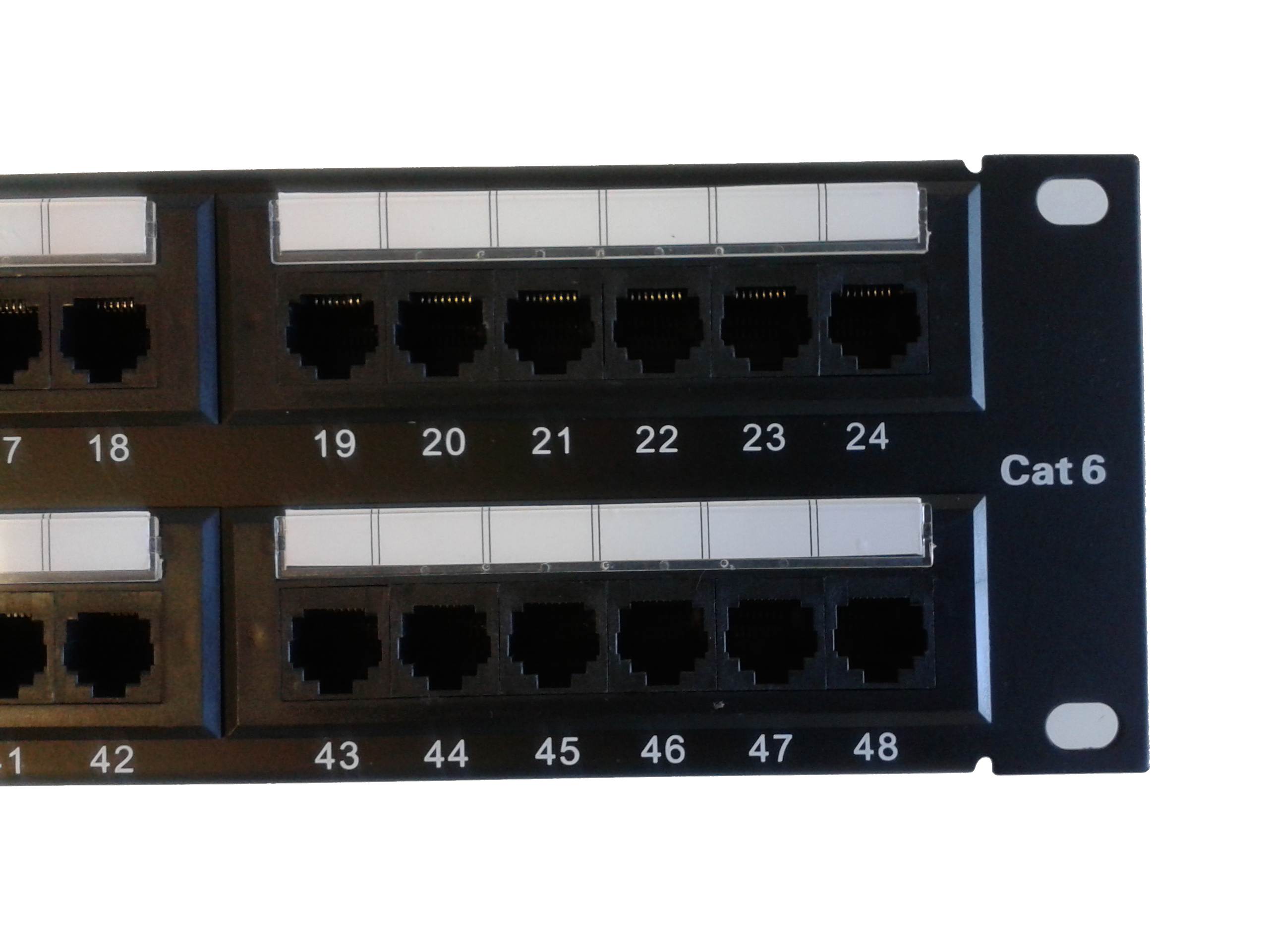 Our Category 6 (CAT 6) 48-port, 2 rack mount spaces patch panels surpass industry requirements for Category 6 performance. These horizontal patch panels are designed with a rear 110 IDC's for quick and easy punch-down termination and come integrated with a universal label allowing for either 568A & B wiring. Package includes mounting screws.